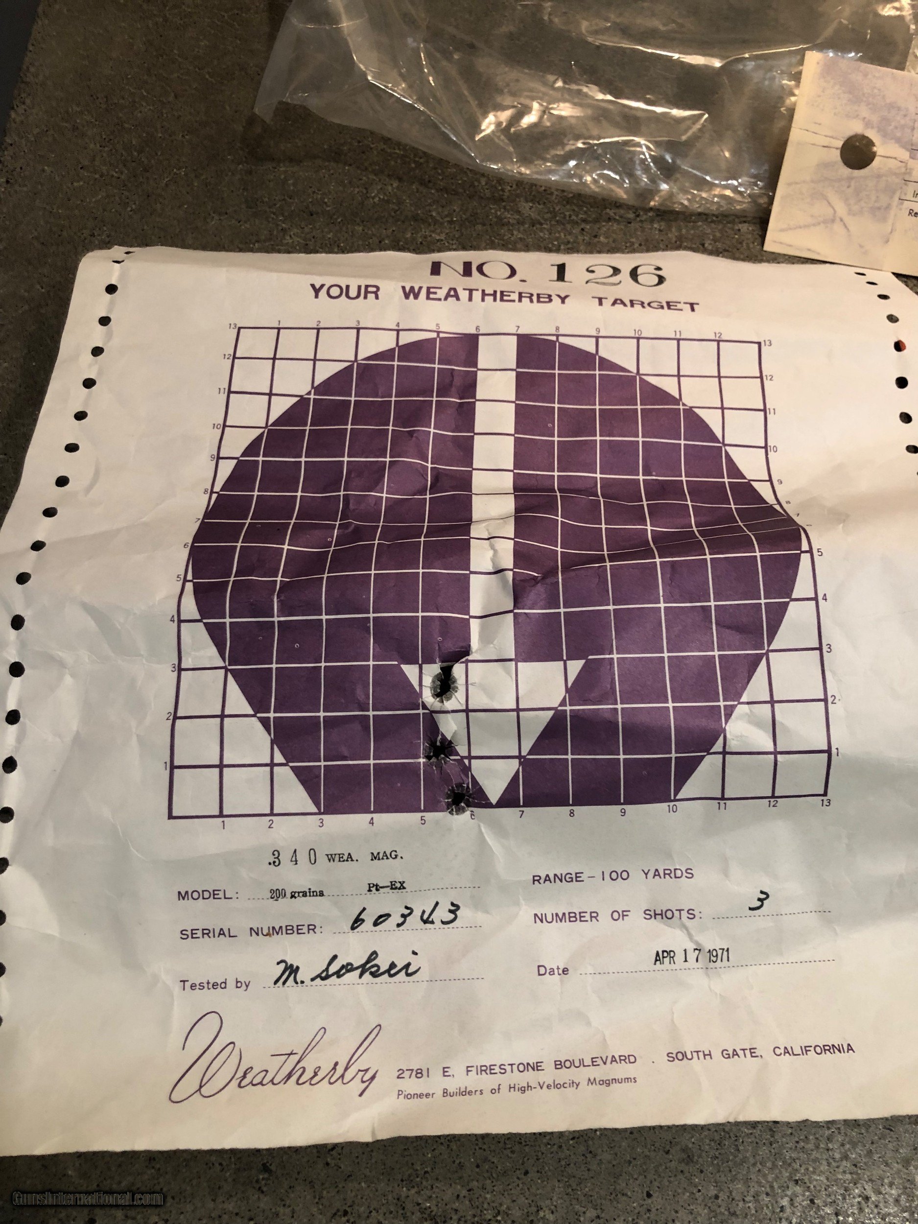 Description: New and unfired Weatherby 340 26” barrel talley rings and bases. Weatherby supreme 3-9x44 has never fired. Super clean and have original shipping box and paperwork. Manufactured in 1971 made in Japan No sales to California. Your FFL must except the rifle, along with a copy of my drivers license. Shipping is $50. If require FFL to FFL there will be an extra charge of $50 for shipping . contact rjkinskiegmail #360-914-7441 SOLD Manufacturer: Weatherby Model: Mark V Caliber Info: 340 Condition: New Metal Condition: New Wood Condition: New Bore Condition: New Barrels: 26 Manufacture Date: 1971 Item Location: Washington |