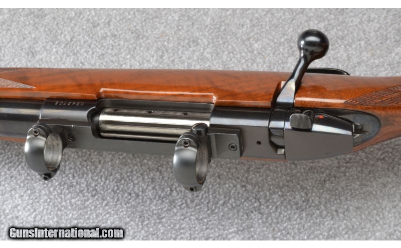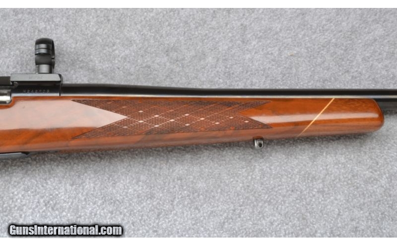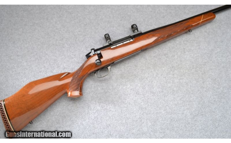 Description: Wood shows a couple light storage marks and remains excellent. Blue and bore also excellent throughout. Complete with rings and base. No box. SOLD Manufacturer: S/N H242XXX Caliber Info: .378 Wby. Mag. Metal Condition: Excellent Wood Condition: Excellent Bore Condition: Excellent Barrels: 28" with Brake Triggers: Factory Stock: Checkered Walnut Pistol Grip with Contrasting Cap Stock Dimensions: 13 1/2" LOP Fore End: Checkered Walnut with Contrasting Cap Butt Pad: Brown Vented Rubber Weight: 9 LB Sights: None - Rings & Base Included Item Location: Wheeling, WV |
