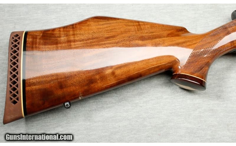 Description: Weatherby Mark V comes with original box. 26" threaded barrel. This bolt action rifle is in near perfect condition. The only flaw being a ding on the underside of the butt stock. This is a very nice looking rifle. .416 Weatherby Magnum SOLD Metal Condition: very good Wood Condition: very good Bore Condition: bright Barrels: 26" threaded barrel Stock Dimensions: 14 Fore End: checkered wood Butt Pad: Weatherby rubber Weight: 8 lb - 14 oz Sights: none Item Location: La Vista, NE |