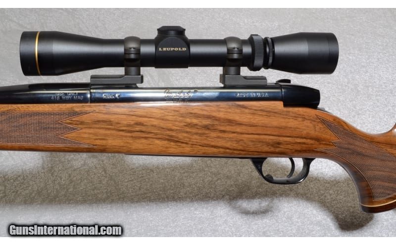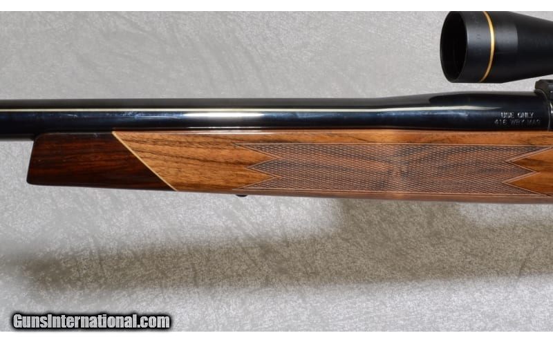 Description: This is a beautiful Weatherby that was made in America. It is chambered in .416 Weatherby Magnum and would make a great addition to any Big Game Hunters collection. The Steel is deeply blued and highly polished and topped with a Leupold VariX II 2 - 7 x 33 .416 Weatherby Magnum SOLD Chambers: Bolt Action Metal Condition: Excellent Wood Condition: Excellent Bore Condition: Excellent Barrels: 26" Threaded Barrel Stock Dimensions: "13 1/2 LOP, 1 1/2"" DAC, 2 1/4"" DAH Fore End: Fine Walnut with Diamond Checkering Butt Pad: Decelerator Rubber Butt Pad Weight: 10 lbs. Sights: Leupold VX II 2 - 7 x 33 Item Location: Lehi, UT |