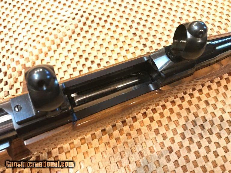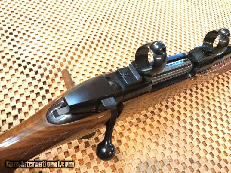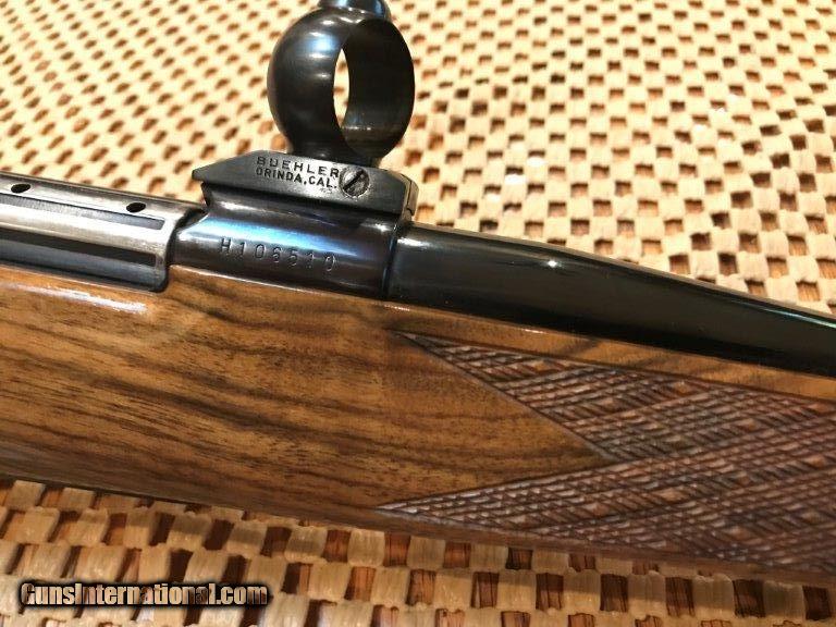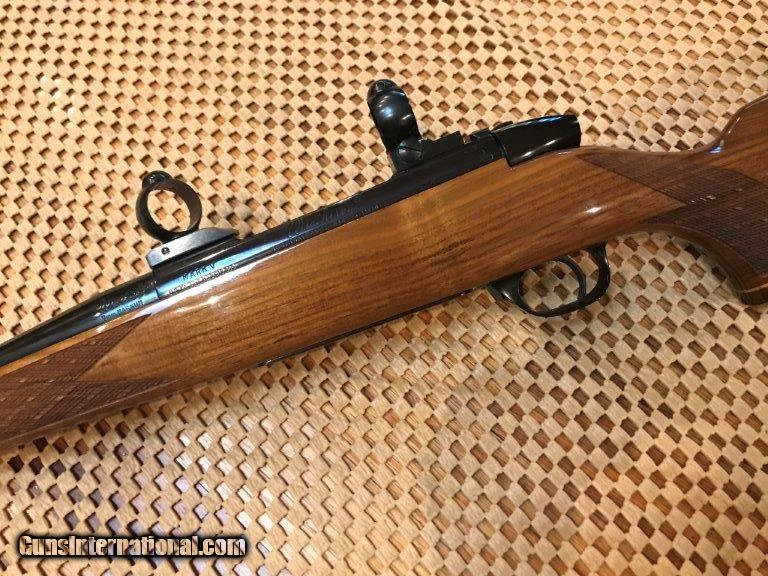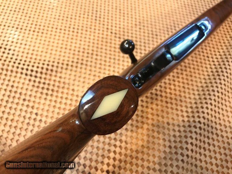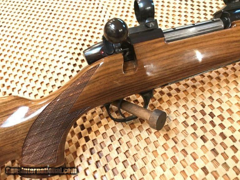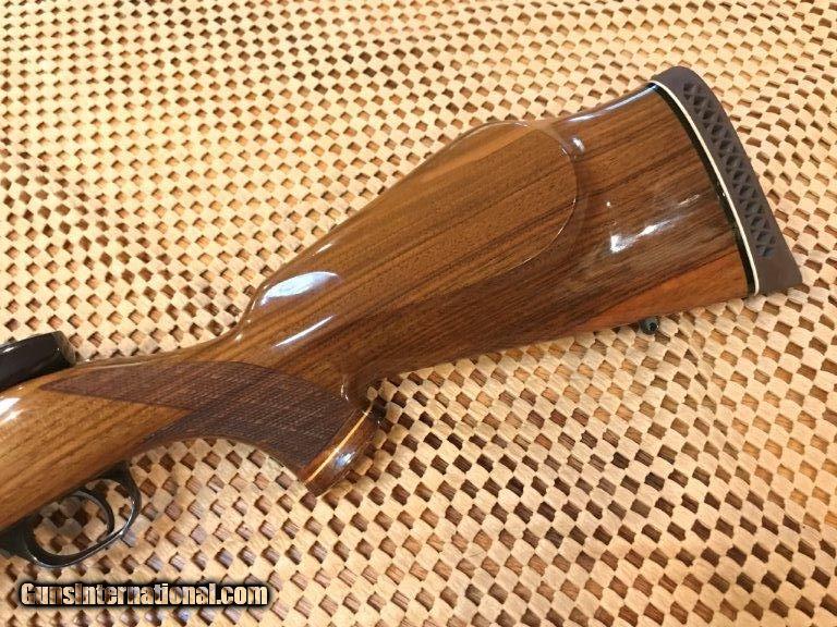 Description: Weatherby, Mark V, made in Japan, 24" barrel, 7mm mag, 99% overall conditon, Bueler 1" rings and bases, right hand cheek piece, Weatherby pad, rosewood cap forend and pistol grip cap, skip line checkering, 13 1/2" length of pull. Serial No. H106510. For further information call John at 941-748-7318. SOLD |
