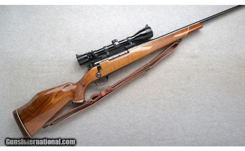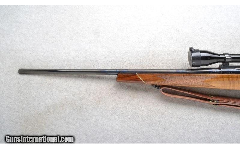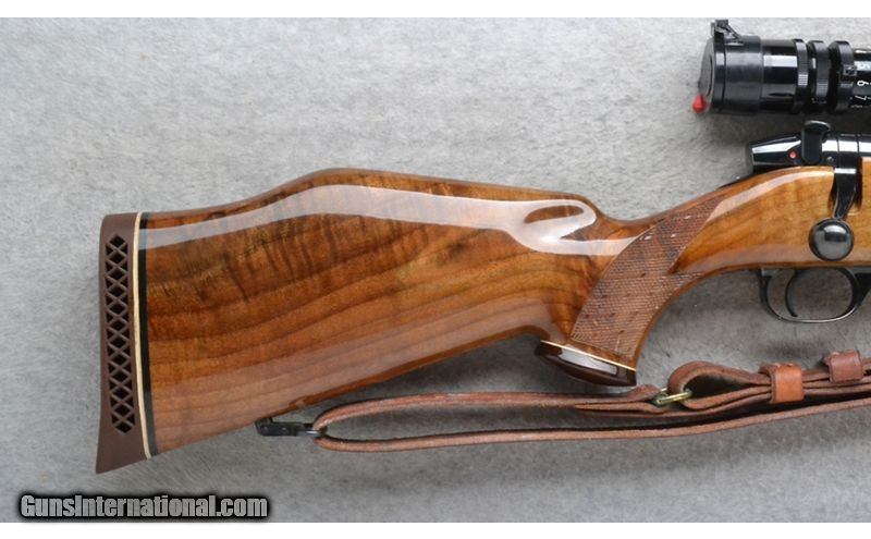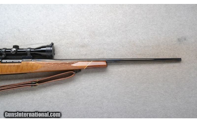 Description: This Weatherby Model Mark V is a right hand bolt action rifle in 7mm Wby. Mag. Cal. It has a 24 inch barrel. It is outfitted with a Bushnell Scope. No iron sights. The butt stock is a diamond checkered grip walnut pistol grip with a raised cheekpiece and rosewood cap. The forearm is a diamond checkered grip walnut with a rosewood tip. Made in Japan. 7mm Weatherby Magnum SOLD Chambers: Internal magazine with a hinged floorplate. Metal Condition: Excellent. Wood Condition: Very Good. Some light handling marks. Bore Condition: Excellent. Barrels: 24 inch. Stock Dimensions: LOP 13 3/8 inches. Fore End: Diamond checkered grip walnut with a rosewood tip. Butt Pad: Weatherby brown rubber recoil pad. Weight: 9 lb. 3 oz. Sights: Bushnell Scopechief IV 3x-9x Scope. No iron sights. Item Location: Richfield, WI |