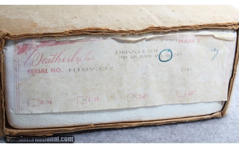 Description: A nice Weatherby Mark V, left-handed, in 7mm Weatherby magnum with a 24 inch barrel. 7mm Weatherby Magnum SOLD Metal Condition: Excellent with wear Wood Condition: Excellent with wear Bore Condition: Bright and Shiny Barrels: 24 inches Triggers: Single action bolt Stock Dimensions: 13 1/4 inche LOP Fore End: "High gloss Walnut, checkered with Rosewood cap Butt Pad: Rubber Weight: 8 lbs. Sights: Drilled and Tapped with mounts and 30mm rings Item Location: Gonzales, LA |