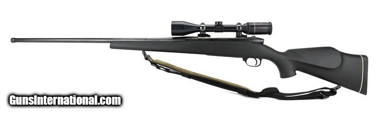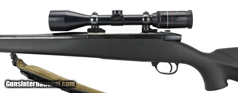 Description: Weatherby Mark V 7mm-Wby Mag caliber rifle. Japanese made rifle with synthetic stock, threaded barrel and Weatherby Supreme 3X9 Scope. Excellent condition.