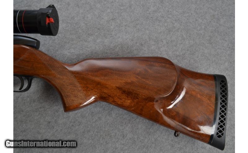 Description: SOLD Manufacturer: S/N H240816 Caliber Info: 7MM Weatherby Magnum Metal Condition: Very good condition. Wood Condition: Very good condition with slight handling marks. Bore Condition: Very Good Condition. Bright and shiny. Good rifling. No pitting or rust noted. Barrels: 24 Inches Triggers: LOP - 13 3/4 Inches. Stock: Highly figured and checkered walnut stock.. Butt Pad: Weatherby rubber recoil pad. Weight: 9 Lbs 2 Oz as shown Sights: No sights, but drilled and tapped for scope bases. Includes a Weatherby Supreme 3-9x44mm scope. Item Location: Hoffman Estates, IL |