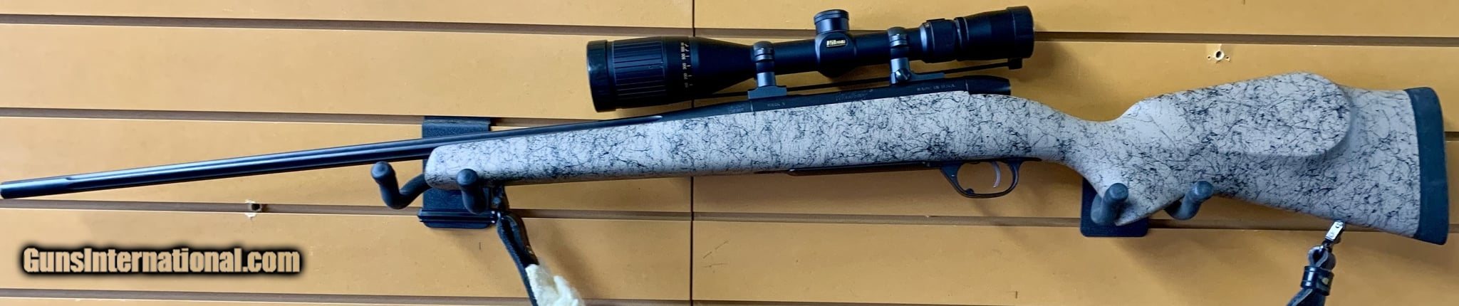 Description: Guns Listing ID: 1393830 This is a like new Weatherby Mark V Accumark rifle in .240 Wby. The rifle looks to be fired only a few times. The 24 inch fluted barrel is in like new condition with no cosmetic issues. This nice rifle has a hand-laminated, raised-comb composite stock with full-length aluminum bedding block, matte gel-coat finish with spider accents. Rifle is like new but does not have a rifle case. Rifle does come with a sling that is lined in premium saddle bark shearling wool and connected with swivel mounts. Scope: Nikon Monarch UCC Riflescope 5.5-16.5x44 AO Rifle Scope Nikoplex Reticle ($400 Value) Caliber Info: .270 Wby Mag. Chambers: Bolt action repeater. Metal Condition: As new. Bore Condition: As new. Barrels: 24 inch with fluting. Triggers: Single. Stock: Hand-laminated, raised-comb composite stock with full-length aluminum bedding block, matte gel-coat finish with spider accents. Fore End: Matching. Butt Pad: Factory black rubber butt pad.. Sights: Drilled and tapped for your scope base.(Scope Included) SOLD Manufacturer: WEATHERBY Model: MARK V ACCUMARK Caliber Info: .240 WBY Condition: Used - Non-Certified Barrels: 24 BARREL Finish: BLUE |