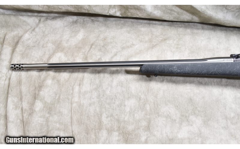 Description: The features of this rifle include 9-lug bolt, Black spider webbed Monte Carlo stock, fluted 26-inch stainless steel barrel, muzzle brake, and soft recoil pad. .257 Weatherby Magnum SOLD Chambers: 4 Metal Condition: Excellent. Wood Condition: Excellent. Bore Condition: Shiny and bright with crisp rifling. Barrels: 28 inch fluted stainless steel Triggers: Factory trigger. Stock Dimensions: 13-3/8 inch LOP. Butt Pad: Soft and thick rubber pad. Weight: 9 lb - 1 oz Sights: Set up for scope. Item Location: Rogers |