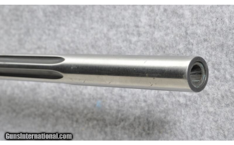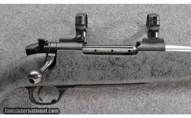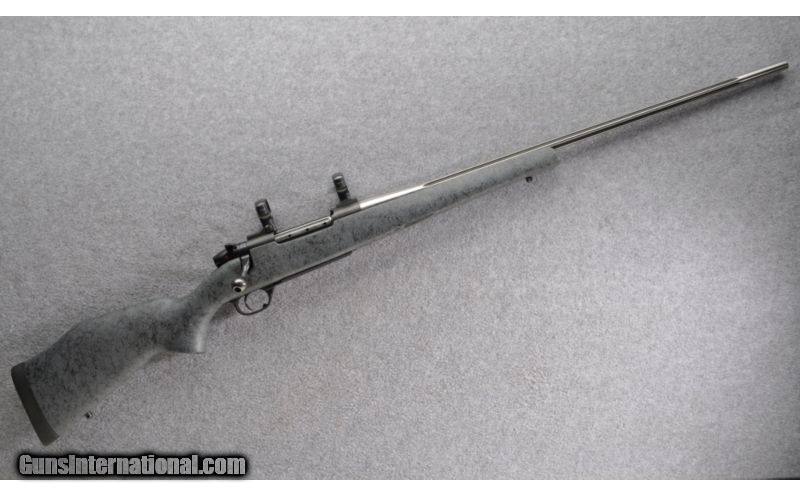 Description: Made in the U.S.A. SOLD Caliber Info: .300 Weatherby Magnum Metal Condition: Showing blue wear at the bolt handle, trigger guard & mag floorplate, also a few marks near the muzzle Bore Condition: Strong rifling shows some fowling deposits Barrels: 26" Stainless Fluted Stock: Gray composite with spiderweb accents Stock Dimensions: 13.5" LOP Butt Pad: Decelarator by Pachmayr Weight: 7 lbs 4 oz Sights: No Sights, Mounted with Leupold two piece scope bases & rings Item Location: Grand Junction, CO |