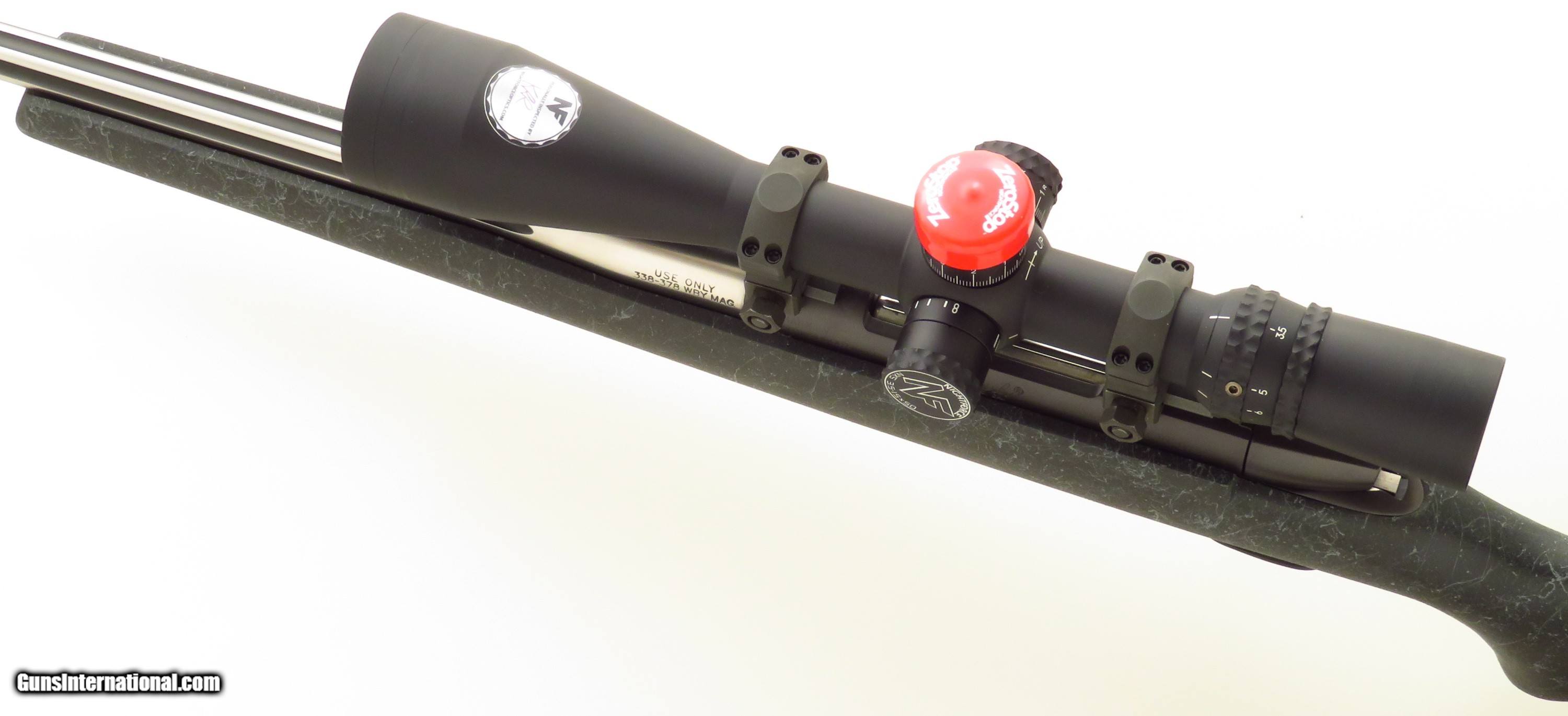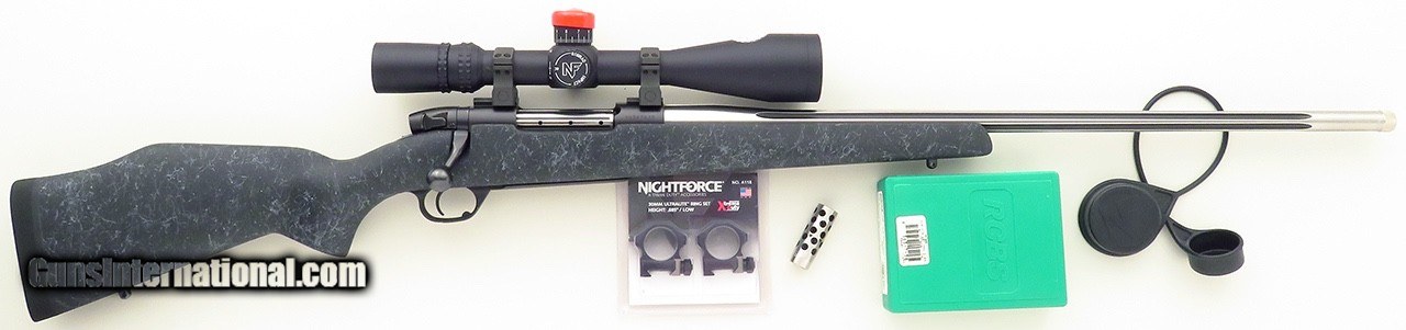 Description: Weatherby Mark V Accumark .338-378 Weatherby Magnum. Made in 1998, consigned by the original owner and never afield, serial SB047690 has a 26-inch stainless steel barrel (blackened flutes, threaded, 27.5 inches with brake, thread protector cap). OPTIC: a Nightforce NXS 3.5-15x50 with illuminated Mil-R reticle is attached with Nightforce mounts. DIMENSIONS: Weight (with optic) is 11.0 pounds and the length-of-pull is 13.5 inches. CONDITION: The bore is outstanding - strong and bright to the point of pristine. Metal and stock finishes as well as the optic are essentially new. INCLUSIONS: Manual, warranty card, scope box with literature and shade, dies, 40 rounds of virgin brass and an extra set of Nightforce 30mm low rings are present. No rifle box. The price is firm and layaway is available. $3,250 plus shipping. SOLD Rifle Caliber: .338-378 Weatherby Magnum |