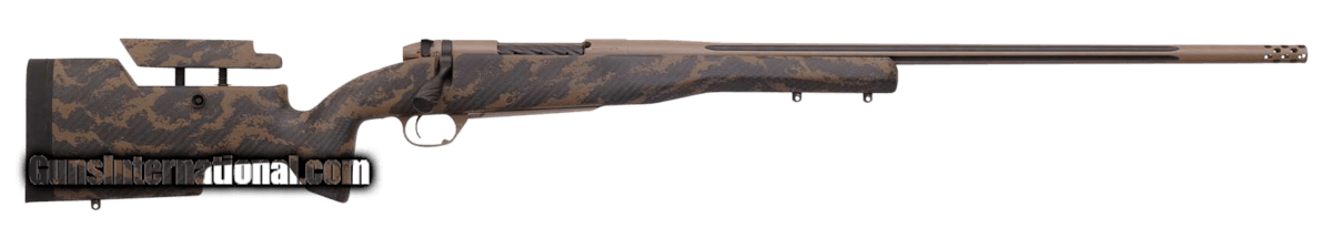 Description: Guns Listing ID: 87930 The Mark V Accumark Elite features a 2-Tone coyote tan fluted barrel and trigger guard, graphite black bolt, bolt knob, and safety, and a carbon fiber and brown sponge pattern stock. It has an Accubrake ST slimline muzzle brake that uses standard suppressor compatible threads and a Triggertech Field trigger that is stated to provide a true zero-creep break. It features an adjustable comb and dual swivel stud attachments. SOLD Manufacturer: WEATHERBY Model: Mark V Caliber Info: 6.5 WEATHERBY RPM Condition: new Barrels: 24" barrel |