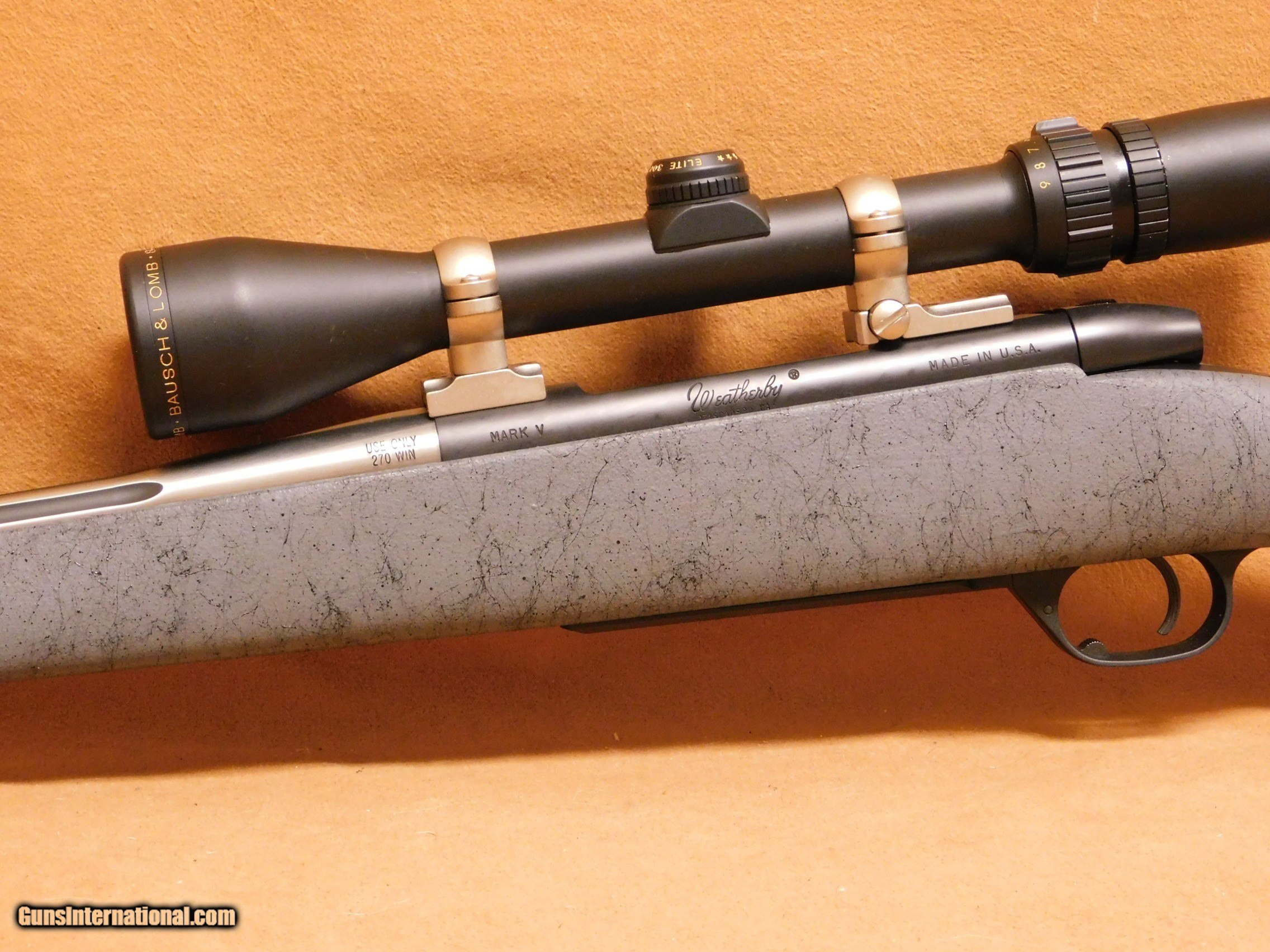 Description: This is a very, very nice, used Weatherby Mark V Accumark Ultra Lightweight in .270 Winchester. It has a 24-inch, fluted barrel with black flutes on an otherwise stainless barrel. The bolt matches the barrel with black flutes on a stainless bolt. Atop it is a Bausch & Lomb Elite 3000 3-9x40 scope. The entire rifle, including the scope and rings, only weighs 6.5 lb! This rifle would make a fantastic hunting rifle! This rifle no longer has its box and comes exactly as you see here. All items are also available for sale in our brick & mortar store and are subject to prior sale. Think long, think wrong. Payment On firearms, we typically only accept credit cards or money orders/cashier's checks.