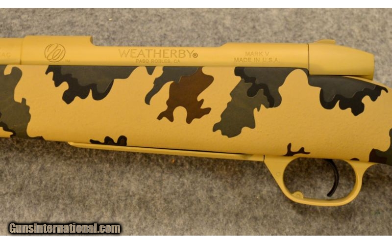 Description: This is a new Weatherby Mark V Arroyo chambered in .300 Weatherby Magnum SOLD Manufacturer: 2016 Caliber Info: .300 Wby. Mag. Metal Condition: New Wood Condition: New Bore Condition: New Barrels: 26 inch fluted barrel Cerakote finished with Brown Sand and Flat Dark Earth flutes Stock: Hand-laminated, raised comb, Monte Carlo composite stock with CNC-machined aluminum bedding plate features KUIU Vias camo Stock Dimensions: 13 5/8 in. LOP Butt Pad: Decelerator pad Weight: 8 lbs. 1 oz.. Sights: Tapped for scope mounts Extras: Box Item Location: Lehi, UT |