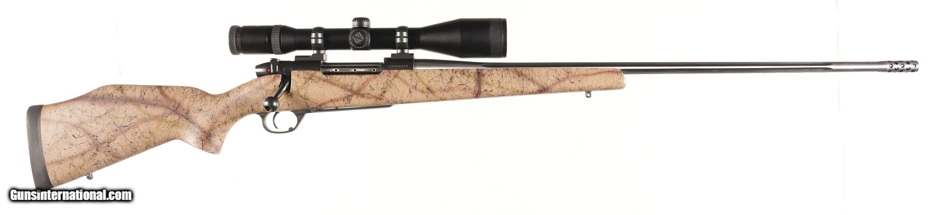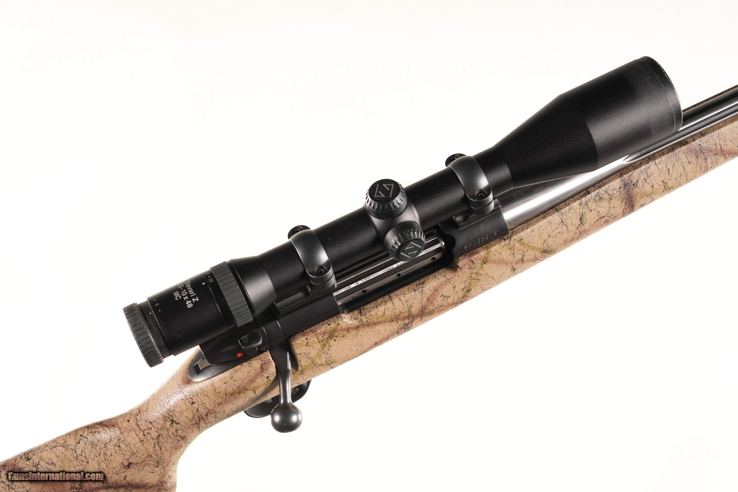 Description: Weatherby MKV Cal 270 WBY mag with fluted stainless Bbl with muzzle brake. Synthetic stock with cheek rest 13 1/2" LOP. Mounted with Zeiss Diavari 2.5-10 x48mm variable scope with 30mm tube and lens covers. Condition, Excellent with minimal use. Bright optics. Metal is excellent and tock has no distress. Mechanically fine • Free Shipping, No Credit Card Fees. • Lay-a-way available for this firearm. • 1/3 Down, a 1/3 in 30 Days, 1/3 in 60 Days. SOLD Manufacturer: Weatherby Model: Mark V Serial Number: SB068979 Barrel Length: 26 |