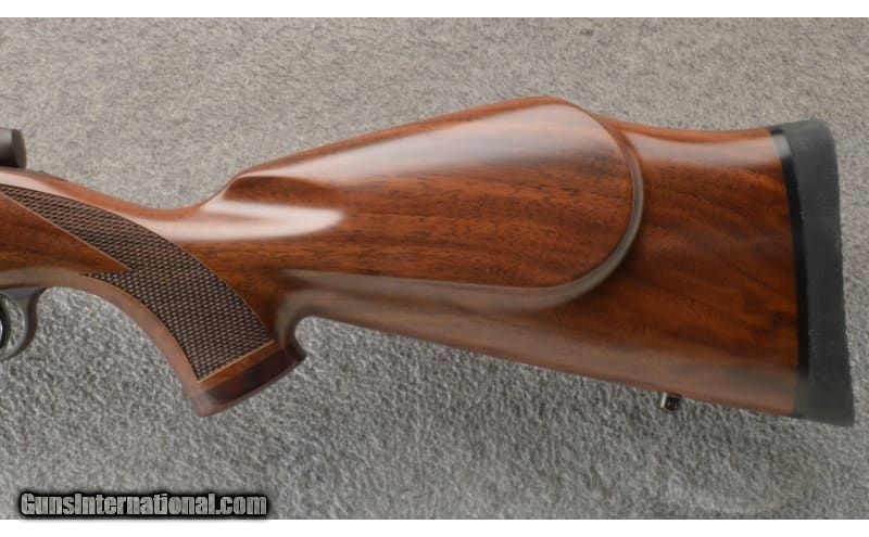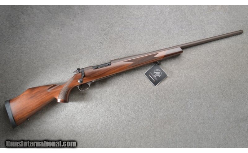 Description: Weatherby Mark V chambered in 300 Winchester Magnum. This Weatherby features a 24" threaded barrel with a burnt bronze cerakote finish, satin finished stock with Monte Carlo cheek piece and rosewood fore end cap, decelerator recoil pad, adjustable trigger, spiral fluted bolt, cocking indicator, swivel studs, magazine drop floor plate. Includes matched factory box, paper work, cable lock and muzzle comp. .300 Winchester Magnum SOLD Chambers: Bolt action. Metal Condition: New. Wood Condition: New. Bore Condition: New. Barrels: 24" barrel. Triggers: Adjustable. Stock Dimensions: LOP 13.5". Fore End: Checkered. Butt Pad: Rubber. Weight: 8.25 lbs Sights: None. Item Location: Owatonna, MN |
