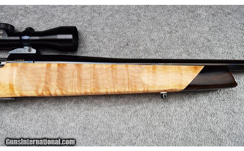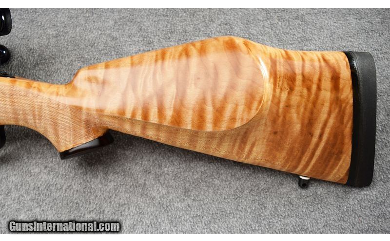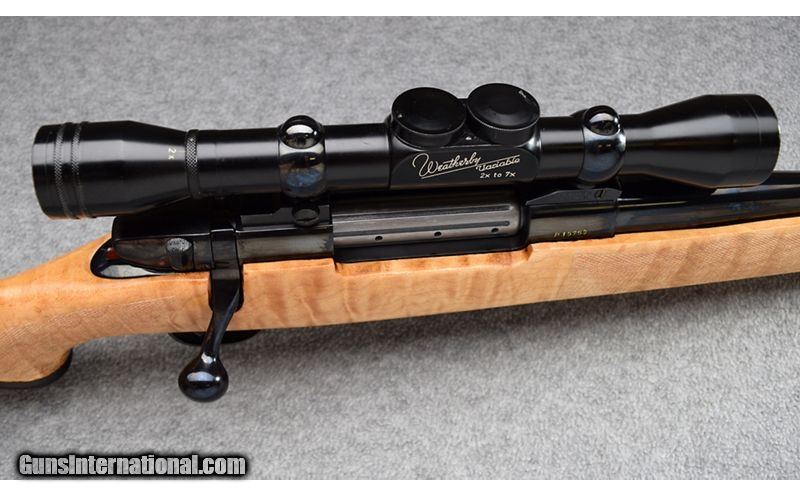 Description: This Weatherby Mark V is in excellent overall condition showing little use. Gun has a beautifully figured Maple stock that has had an amateur attempt at checkering. Blu and bore are excellent! Floorplate is engraved with previous owners name. Gun is complete with Push Feed action, sling swivel studs and Weatherby Variable 2X to 7X scope! Absolutely beautiful! .300 Weatherby Magnum SOLD Metal Condition: Excellent Wood Condition: Excellent Bore Condition: Excellent Barrels: 26 Triggers: Factory Stock Dimensions: 14 1/4" LOP Fore End: Checkered Maple Pistol Grip with Rosewood Pistol Grip Cap & Monte Carlo Cheekpiece - Checkered Maple Forend with Rosewood Forend Cap Butt Pad: Decelerator Black Rubber Butt Pad Weight: 9 1/4 lb Sights: Weatherby Variable 2X to 7X Item Location: Wheeling |
