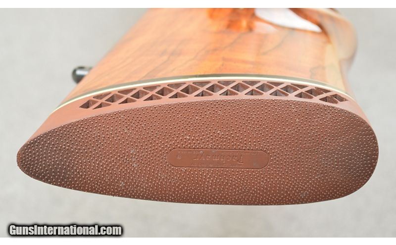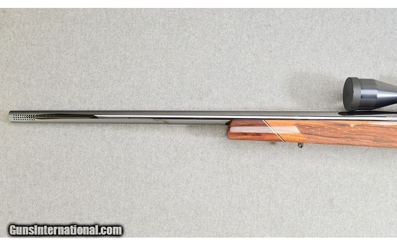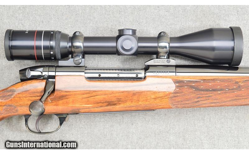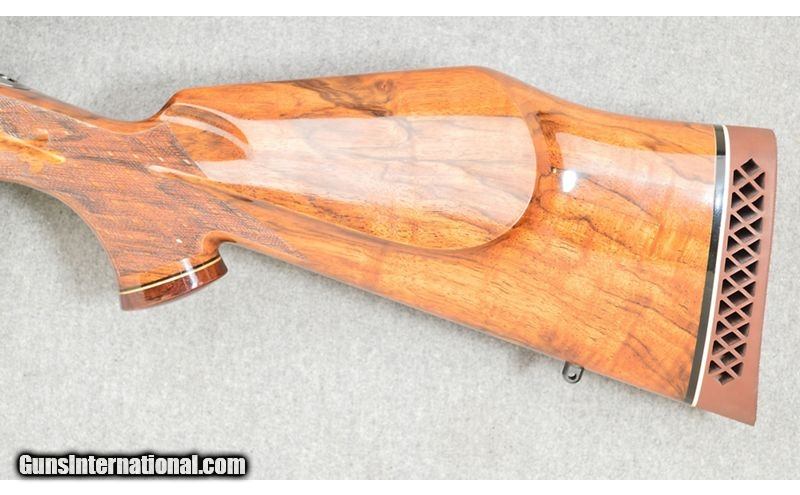 Description: For your consideration, a Weatherby Mark V chambered in .460 Weatherby Magnum. This gorgeous piece is the work of Weatherby's custom shop. Checkered wrist and forearm, the stock is handsomely figured. A Weatherby Supreme 3-9×44 scope in a Buehler mount tops the action. In accordance with the heavy chambering, the muzzle is ported. Only a scrape to the left barrel prevents the piece rating as excellent. This is of Japanese manufacture. .460 Weatherby Magnum SOLD Metal Condition: Very Good Wood Condition: Excellent Bore Condition: Excellent Barrels: 24 Triggers: Serrated Face Stock Dimensions: 14" LOP Fore End: Skip Checkered Butt Pad: Pachmayr Rubber Weight: 11 lbs Sights: Weatherby Supreme Item Location: Las Vegas, NV |