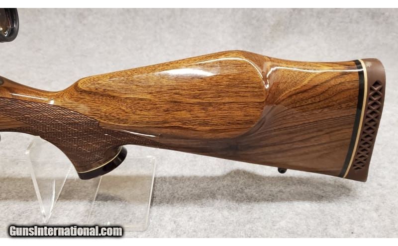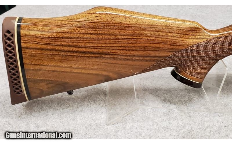 Description: Before composite stocks, brushed stainless steel barrels, and Cerakote finishes every Weatherby Mark V® that fell into the hands of lucky hunters was rich walnut and blue steel. The Deluxe pays homage to those days of traditional craftsmanship for hunters who still marvel at classic styling. Complete with regal diamond-point checkering, a rosewood forend and grip cap, maple spacers and a Pachmayr Decelerator recoil pad. .460 Weatherby Magnum SOLD Chambers: .460 Weatherby Magnum Metal Condition: Excellent Wood Condition: Excellent Bore Condition: Excellent Barrels: 25 Stock Dimensions: 14" LOP Fore End: Excellent Butt Pad: Excellent Weight: 10lbs 1oz Sights: Weatherby Supreme 1.75-5x20MM Scope Chokes: Custom Weatherby Muzzle Break Item Location: Berlin |
