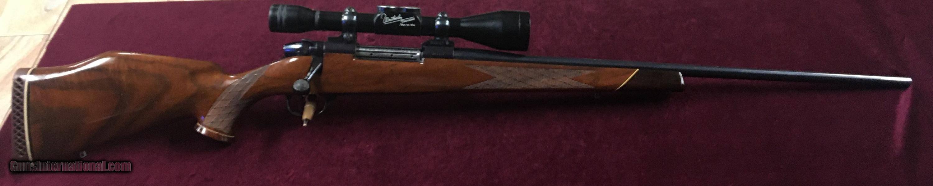 Description: Hello all. In this listing we are selling a beautiful Weatherby Mark V Custom Shop. The wonderfully engraved Custom Shop bolt action rifle is chambered in 300 Weatherby Magnum sporting a 24.5" barrel. The floorplate is is engraved marking that it is a custom shop gun, and also has a checkered bolt. The Wood is Deluxe Mark V wood with a Weatherby 2 3/4-10x scope installed. The original blueing is at 98%, with the original wood scoring at 95%. This is a fantastic gun being priced way below other custom shop manufactured guns at the low price of $1995. If you have any questions or require additional photos please feel free to contact us. We charge 3% on all card transactions. Buyer pays shipping. SOLD Rifle Caliber: .300 Weatherby Magnum Manufacturer: Weatherby Model: Mark V Deluxe Custom Shop Serial Number: H61157 Barrel Length: 24.5 Metal Condition: 98% Wood Condition: 95% Butt Pad: Original |