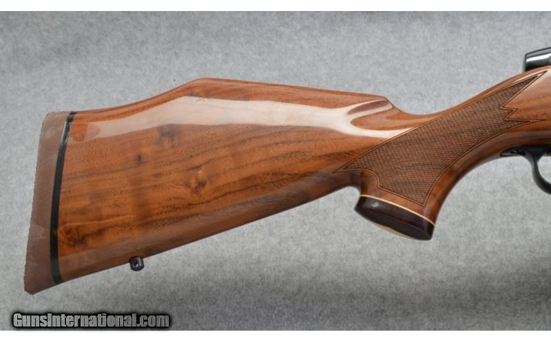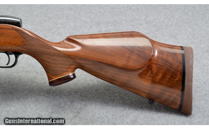 Description: SOLD Caliber Info: .270 Weatherby Magnum Metal Condition: Excellent with a few light usage/handling marks. Wood Condition: Excellent with a few light usage/handling marks. a few light scratches scattered. Bore Condition: Excellent, bright and sharp Barrels: 26 Inches Stock: Pistol grip hardwood with checkering and ebony grip cap with diamond detail. Stock Dimensions: LOP 14 ½ Inches Fore End: Tapered flat bottom hardwood with checkering, white line detail and contrasting wood end. Butt Pad: Brown rubber cushioned butt pad Weight: 8 Lbs. Extras: Box included Item Location: Farmington, UT |