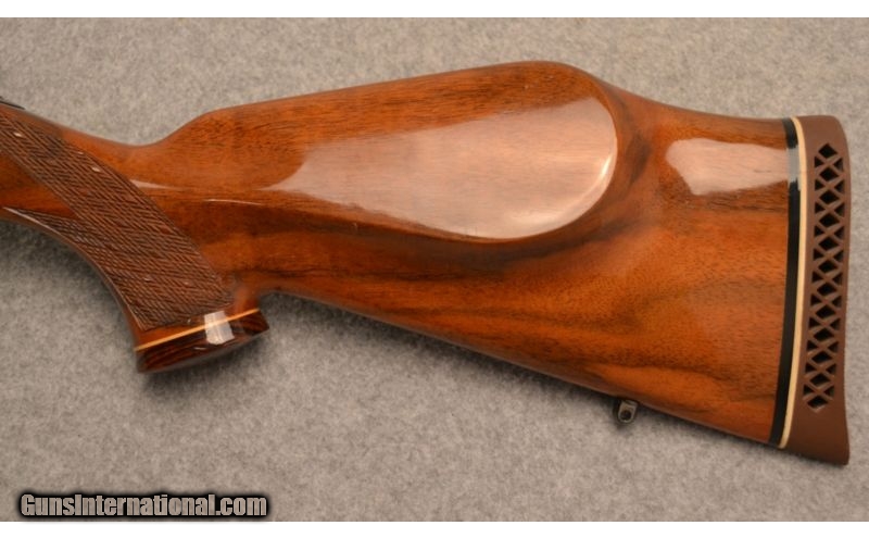 Description: Weatherby Mark V Deluxe Rifle in .300 Weatherby Magnum. A beautiful example of one of the world's most famous big game rifles. And for it's nearly 40 years of age, the rifle is in very good plus condition throughout, from the deep rich blued metal parts, the nicely figured walnut stock and it's glossy finish, to the lightly fired bore. SOLD Manufacturer: Approximately 1981 - Serial Number: H121084 Caliber Info: .300 Weatherby Magnum. Metal Condition: Very good plus condition with some light marks. Wood Condition: Very good plus condition with some light marks. Bore Condition: Excellent condition, lightlly fired. Barrels: 26" Barrel. Triggers: Single. Stock: Nicely figured walnut with rosewood forend and grip caps and Weatherby's distinct skip-line checkering. Stock Dimensions: 13 1/2" Length of pull. Fore End: Checkered forearm Butt Pad: Weatherby recoil pad. Weight: 8 Lbs 9 Oz. Sights: Drilled and tapped for scope mounting. Item Location: Boise, ID |