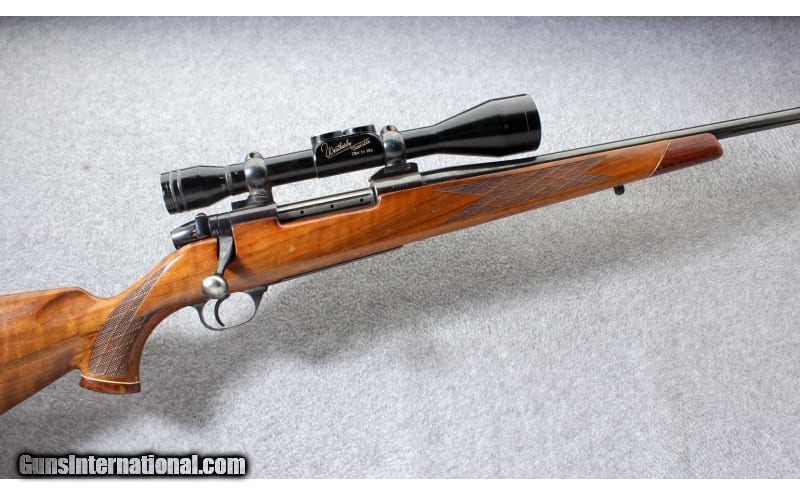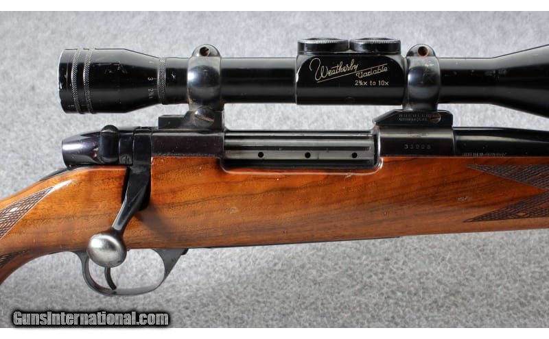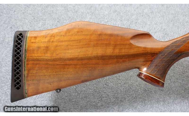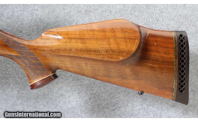 Description: This early German manufactured Weatherby Mark V Deluxe .300 Wby. Magnum was no safe queen. It shows the marks of 60 years of hunting and wears them well. Manufactured 1961. .300 Weatherby Magnum SOLD Metal Condition: "Fair with scratches, fine pitting and finish wear Wood Condition: Good with scratches and dents Bore Condition: "Very good, bright and sharp Barrels: 24 inch barrel Stock Dimensions: 13 1/2 inch LOP Fore End: Skip line checkered walnut with rosewood cap Butt Pad: Weatherby recoil pad Weight: 8 lbs. 12 oz. Sights: Weatherby 2.75x10x scope Item Location: Lehi, UT |