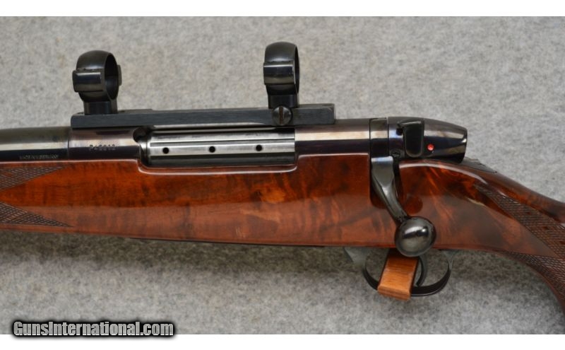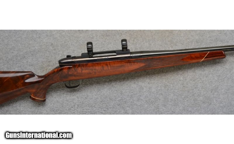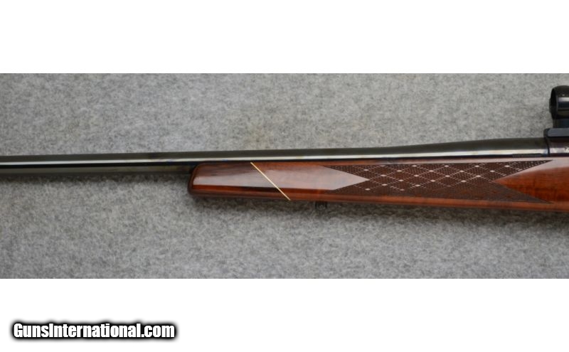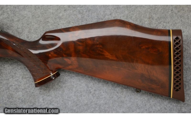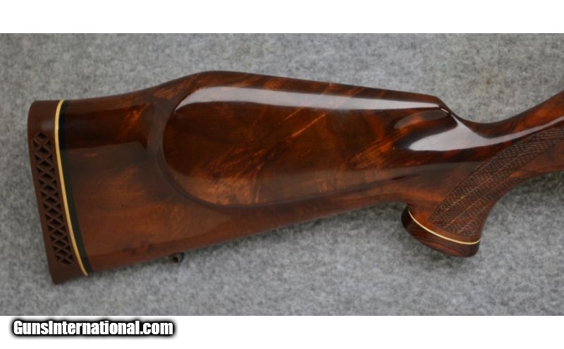 Description: Very good condition overall with normal handling wear. Left hand Mark V action made in West Germany. SOLD Caliber Info: .300 Weatherby Magnum Metal Condition: Excellent Wood Condition: Very Good Bore Condition: Excellent Barrels: 26" Polished Blue Steel Stock: Skipline Checkered Deluxe Walnut in the Weatherby Style Stock Dimensions: LOP: 13 1/2 Fore End: Rosewood Fore End Tip Butt Pad: Weatherby Ventilated Recoil Pad Weight: 8 lbs. 14 ozs. Sights: 1" Redfield Rings and Mount Item Location: Hamburg, PA |