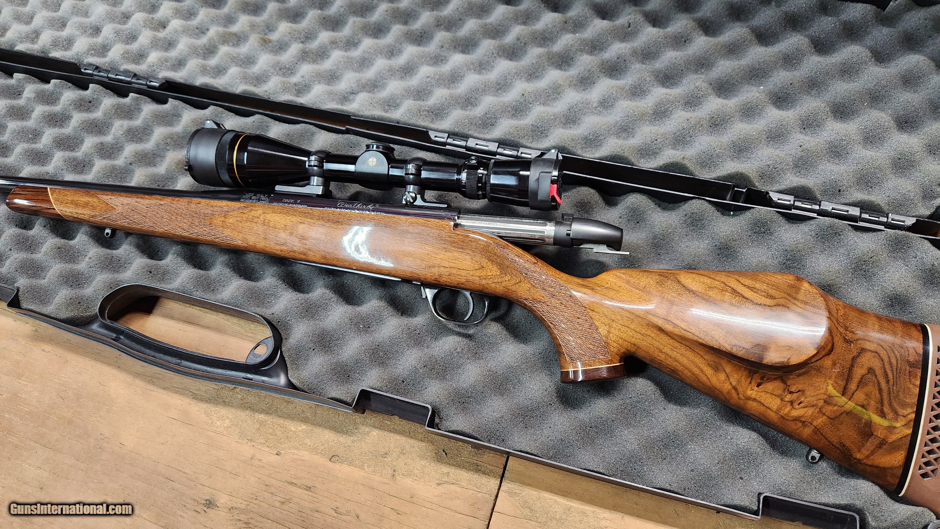 Description: This is a Weatherby Mark V Deluxe rifle, chambered in .300 Weatherby Magnum. It has an internal magazine capacity of 3 rounds, and comes along with a custom muzzle brake already mounted. The scope is a Leupold Vari-X III 4.5-14 x 40mm with a duplex reticle. The stock is in perfect condition with a magnificent sheen, along with the reciver and barrel that both have no signs of wear, with no marks anywhere on it. LIKE NEW but NO BOX SOLD Rifle Caliber: .300 Weatherby Magnum Manufacturer: Weatherby Model: Mark V Deluxe Serial Number: H267981 Barrel Length: 26' Condition: Excellent Metal Condition: Excellent Wood Condition: Excellent Bore Condition: Excellent Action: Bolt Stock: Wood Weight: 8.2 Lbs. + Sights: Scope |