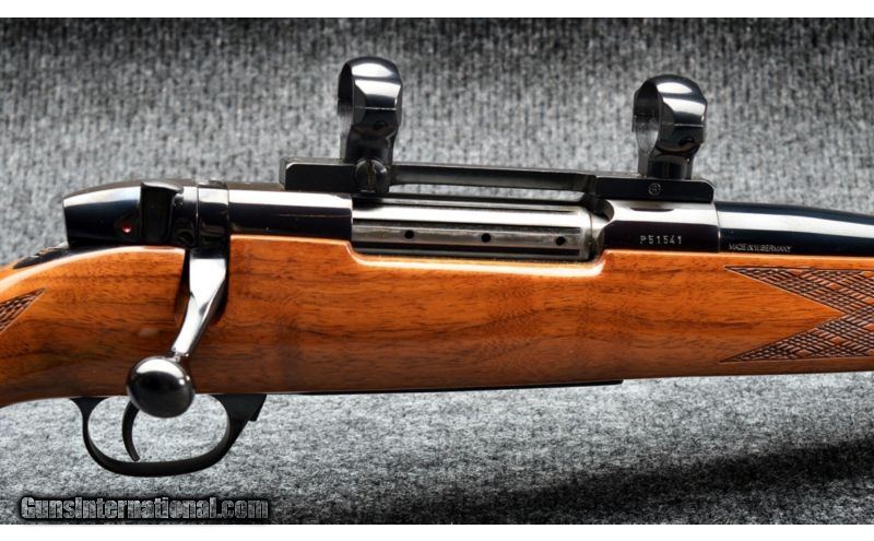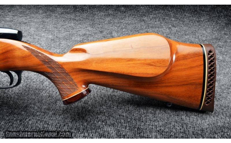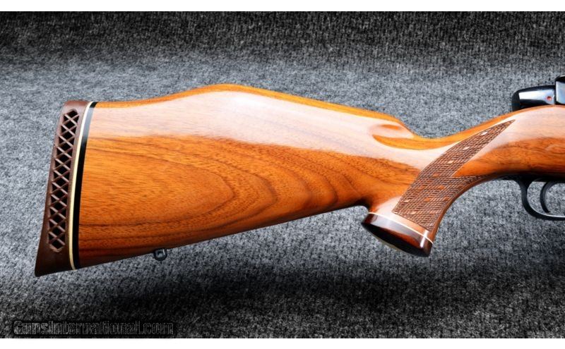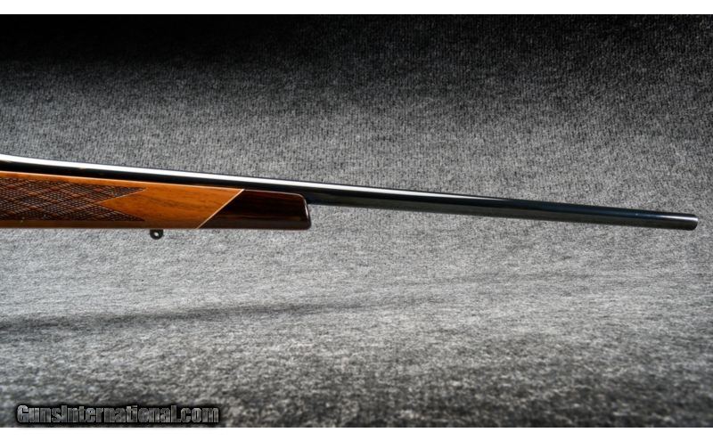 Description: Setting new standards in precision shooting since its inception in 1958, the Weatherby Mark V is a superior long range hunting rifle that has been in use for decades. Chambered in .300 Weatherby Magnum, it is the most popular of all Weatherby cartridges. C.J. McElroy, the founder of Safari Club International, used a Mark V chambered in 300 Wby. Mag. for everything he hunted all over the globe. Elgin Gates, another famous international hunter, was also fond of the Mark V in this same caliber. For a jack of all trades, and a master of all hunts, this gun needs to be by your side on your next adventure. The stock is a Monte Carlo checkered walnut, with rosewood tip and grip caps. This rifle's wood is in excellent shape with the exception of very few marks in the stock: one small mark near the receiver, and one on each side near the rear of the stock. The barrel and receiver are in excellent condition and have a high luster finish. This Mark V Deluxe is a welcome addition to any collection. SOLD Manufacturer: Between 1959-1973, made in Germany Caliber Info: .300 Weatherby Magnum Chambers: Bolt action Metal Condition: Excellent Wood Condition: Overall excellent, with 3 marks: near left receiver, left and right side of rear stock Bore Condition: Excellent Barrels: 24 inch Triggers: 4 lb Stock: Checkered walnut, rosewood tip and grip caps Stock Dimensions: 13.5 inch LOP, 1.5 inch DAC, 2 inch DAH Butt Pad: Weatherby pad Weight: 8 lb 3 oz Sights: 1 inch rings for scope mounting Item Location: Gainesville, VA |