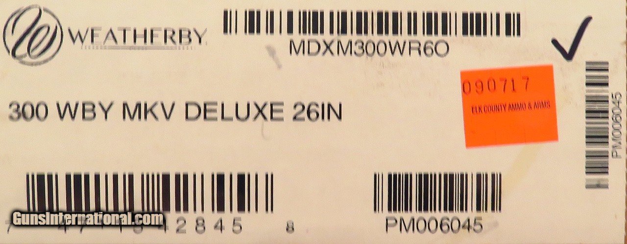 Description: Weatherby Mark V Deluxe .300 Weatherby Magnum. Made in 2018, consigned by the original owner and unfired, serial PM006045 has a 26-inch barrel. Features include a polished blue finish and specially-selected stock with rich dark figure. DIMENSIONS: Weight is 8.4 pounds and the length-of-pull is 13.5 inches. CONDITION: New and unfired since factory proof. INCLUSIONS: Box, manual, sling swivels, Leupold rings/bases, dies and 100 rounds of virgin brass are present. The price is firm and layaway is available. $2,000 plus shipping. SOLD Rifle Caliber: .300 Weatherby Magnum |