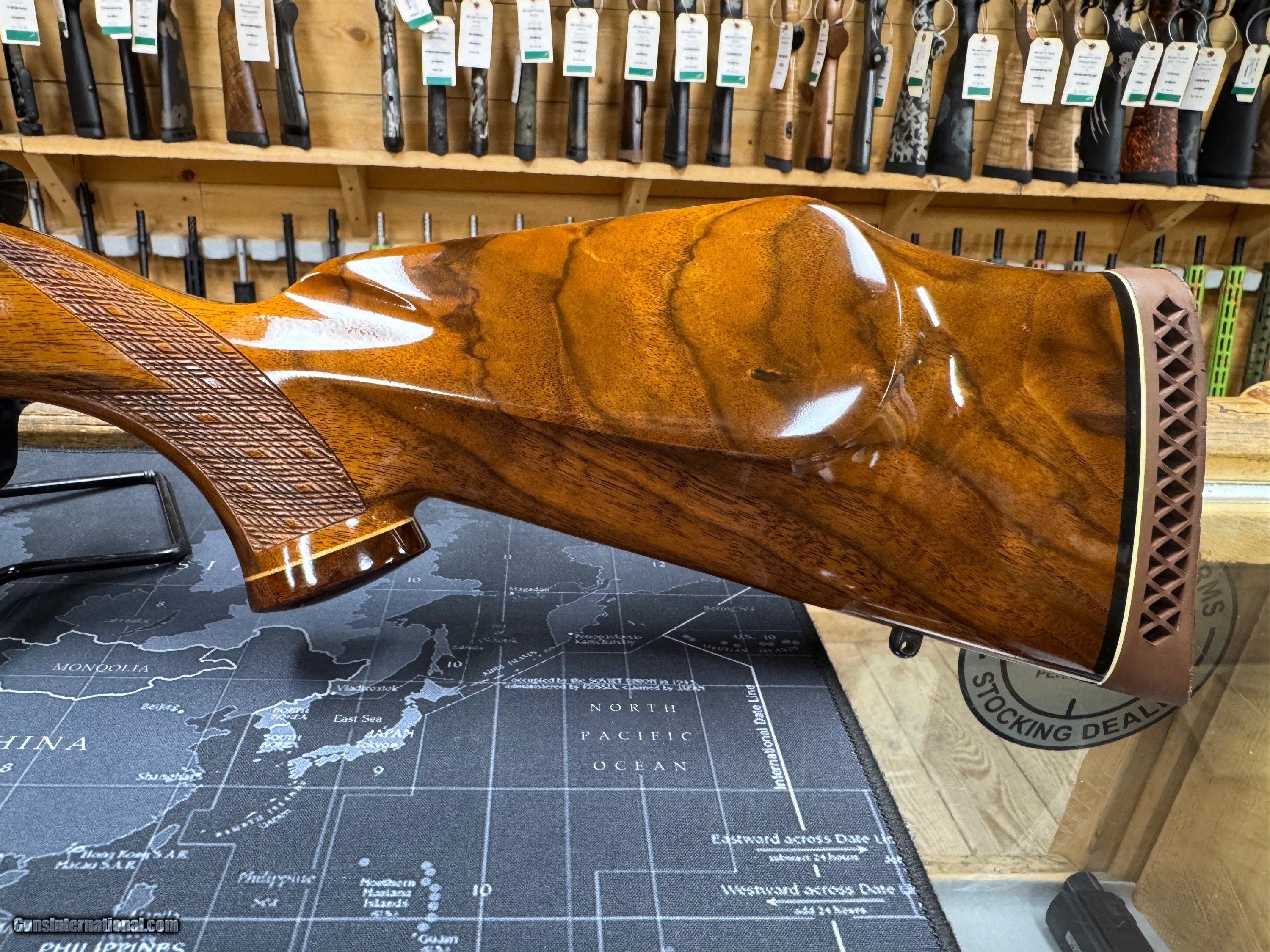 Description: This is a beautiful bolt action rifle. It has a 26" threaded barrel with muzzle break. It has checkard stock with a gloss finish. The stock has only a couple minute handling marks. The barrel has a small ding on the top. The bore and rifling look great. Rifle Caliber: .378 Weatherby Magnum Manufacturer: Weatherby Model: Mark V Deluxe Serial Number: H221229 Barrel Length: 26” Condition: Excellent Finish: Gloss Extras: Attached optic rings Price: $2,199.99 Shipping: $55.00 Contact Seller |