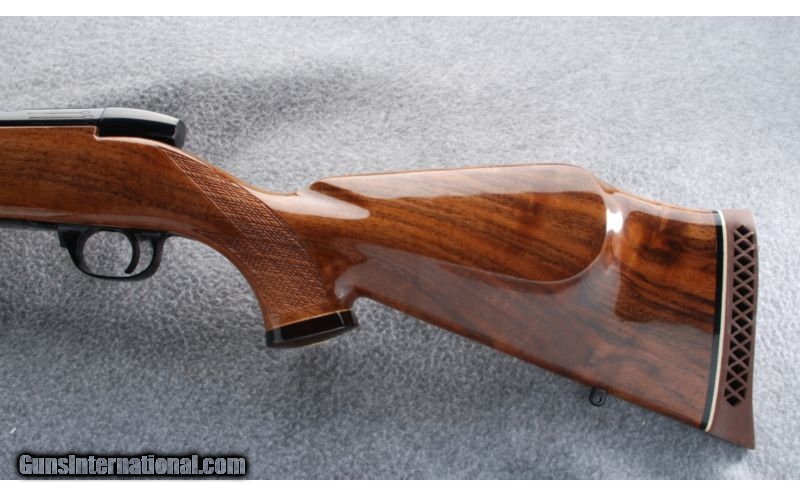 Description: This Japanese built Weatherby appears to be unfired. It features a nicely figured walnut stock with a high gloss finish, rosewood forend tip, and grip cap. The raised Monte Carlo cheekpiece gives proper cheekweld for scope usage. The polished steel components have a deep blued finish. SOLD Caliber Info: .378 Weatherby Magnum Metal Condition: Near New Wood Condition: Near New Bore Condition: Near New Barrels: 26 Triggers: Adjustable. Serrated. Stock: Rosewood capped pistol grip with raised Monte Carlo cheekpiece. Stock Dimensions: 13 1/2" LOP Fore End: Rosewood forend tip. Butt Pad: Maker's recoil pad. Weight: 8 lbs. 5 oz. Sights: Drilled and tapped for optics. Item Location: Gonzales, LA |