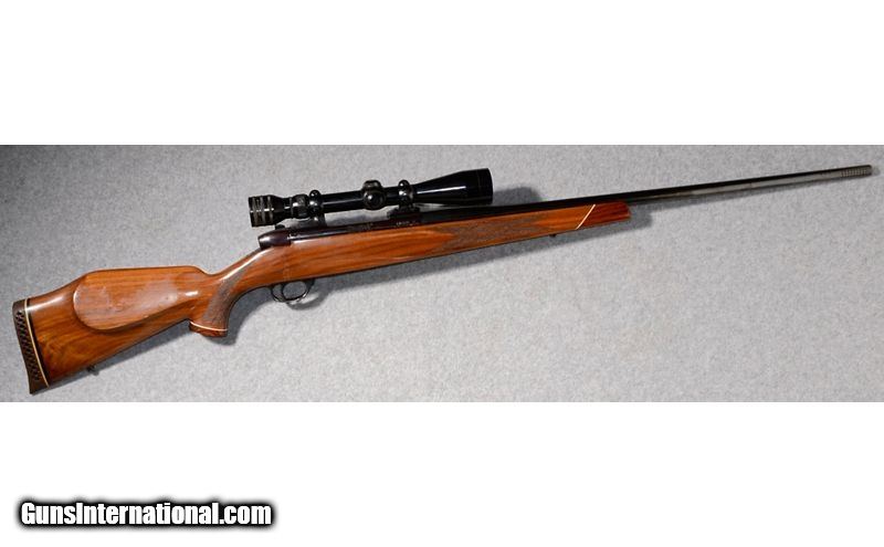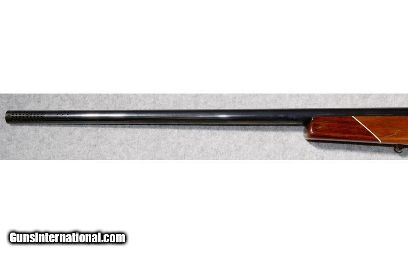 Description: Made in the USA .378 Weatherby Magnum SOLD Metal Condition: "Good-Very Good, Some discoloration and fouling has built up in the corners between the receiver and stock. Wood Condition: "Very Good, Some discoloration and possibly finish wear is present around the cheek piece and on other high traffic areas. Bore Condition: "Very Good, Shiny with strong rifling. Barrels: 26" Barrel with ports Triggers: Factory trigger Stock Dimensions: "13 1/2"" LOP, Left handed Fore End: AA Claro Walnut with Rosewood forend tip and grip cap with Maple spacers. Butt Pad: Weatherby recoil pad Weight: 9lbs 6oz Sights: Redfield 3-9x40 mm riflescope Item Location: Lacey, WA |
