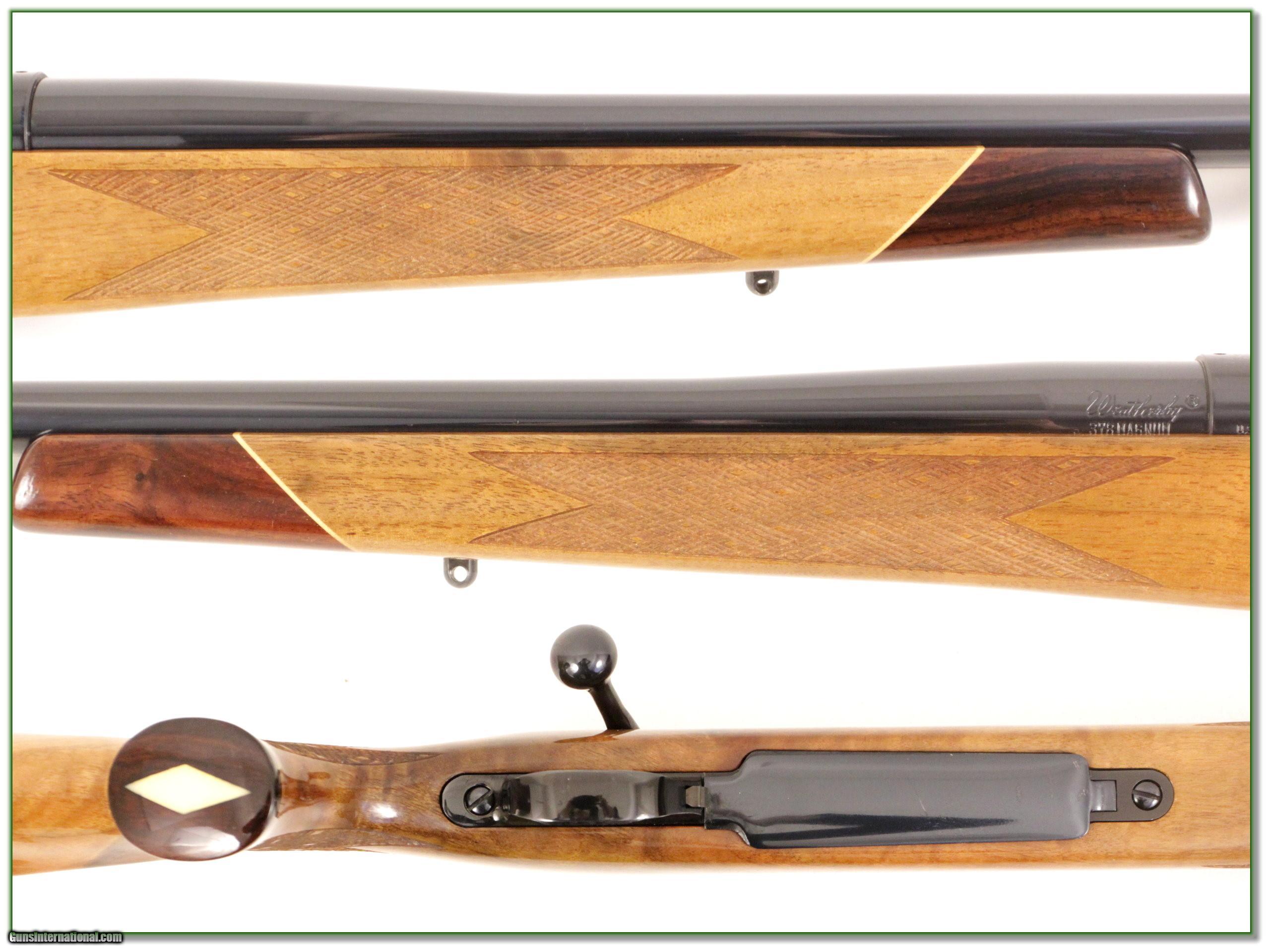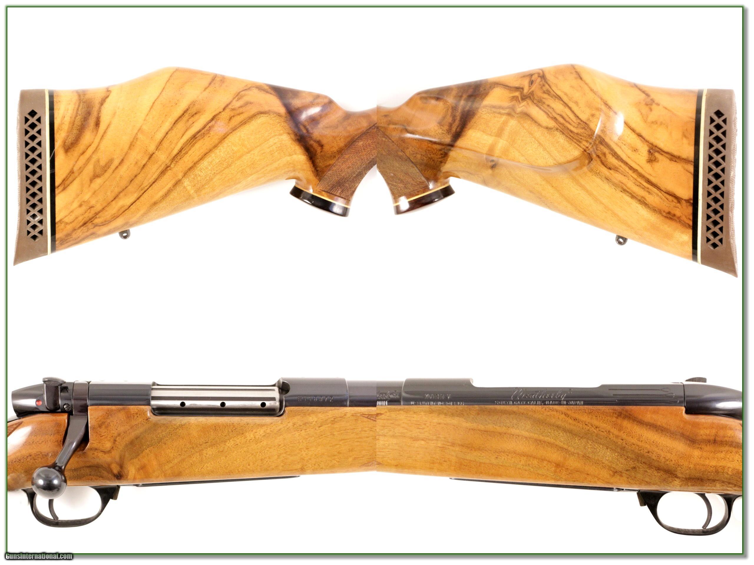 Description: Big game hunters, this is a beautiful Weatherby Mark V Deluxe in the hard hitting 387 Wthy magnum. I have never seen one with such unique wood. Most of these heavy recoil guns were made with straight grain. If you like nice wood this one is it! This is a top quality Japan made Mark V. It has razor sharp lugs and I’m sure only a couple rounds fired. It has a 27in ported barrel. Only a couple minor handing marks. This one is ready for your next trip to Africa! It is a Shooting Investment. Shipping and insurance is $35 or $15 more if you want it shipped in a new Plano hard case. Please email me with any questions or larger pictures. (I now consign quality firearms only 10%! Let me know if you have any you would like to sell!) [16-1428] Payment: Payment is by Money Order, Cashiers Check or Personal Check. I can now also accept MasterCard and Visa with a 3% convenience fee. PayPal can be used for some items but never firearms. Please let us know if you would like to pay via PayPal. Shipping: The shipping charge will be listed in each description. It is $35 for most guns. Some heavy guns or those insured for over $2000 will be higher. Shipments to Alaska and Hawaii are higher because air shipment is required. Most firearms are shipped within 5 days of receipt of payment. We prefer shipping at the beginning of the week to avoid firearms in transit over weekends. We package all shipments carefully and insure them for the full purchase price, rounded up to the next $100. In the unlikely event that damage occurs, it is important that you save all packaging material for the claims process. Optics are shipped Priority Mail and most other non-firearm shipments are shipped First Class. Returns: Our return policy is simple. If for any reason you are not pleased with your purchase, you may return your item for a refund. The only exception is ammunition, it cannot be returned. It is important to us that you are happy. Guns cannot be fired or dissembled before returning them and must be returned in the same condition as received. Notification of a return must occur with-in 3 days of receipt at your dealer. Shipping, convenience and dealer fees are not refundable and are the responsibility of the buyer. Lay-a-way: If needed, we offer a 60 day lay-a-way option on most firearms. It is 1/3 now, 1/3 in 30 days and 1/3 in 60 days. Lay-a-way firearm sales are final. Consigning your firearms with Shooting Investments: We will help you get top dollar for your firearms. While most local guns shops charge 20% or more, our fee is only 10% with a minimum of $50. At your local gun shop it might take months to sell. Selling on-line provides instant access to thousands of interested buyers. You won’t find any other on-line dealer willing to sell your firearms for only 10% or listing every gun on 4 separate s. Selling through an House typically costs the seller 15% and the buyer an addition 15% (so 30%) and you have to wait several months to sell and longer to receive funds. If properly priced, we will sell your firearms in a week or two. Send us an email or give us a call and we’ll explain how easy it is for you to get top dollar. Trading: We collect guns and usually just trade for guns we want to add to our collections. We often sell guns for others wanting to purchase one of ours. We find this the most fair to both of us. Our Commission is only 10% and we hold the gun you want until yours sells. Please contact us if you want to sell one of yours to buy one of ours. Help for California Buyers: We are happy to ship to California. It is the buyer’s responsibility to make sure any item you buy is legal in your state. We are also happy to help with your purchase of a firearm from someone other than us. If you see a gun you would like to buy but the seller can’t or won’t ship to California we can help. You buy the gun and have it shipped to us. We’ll then ship it to your California dealer. The cost for this service is only $30 + shipping. Let me know if we can help! SOLD |