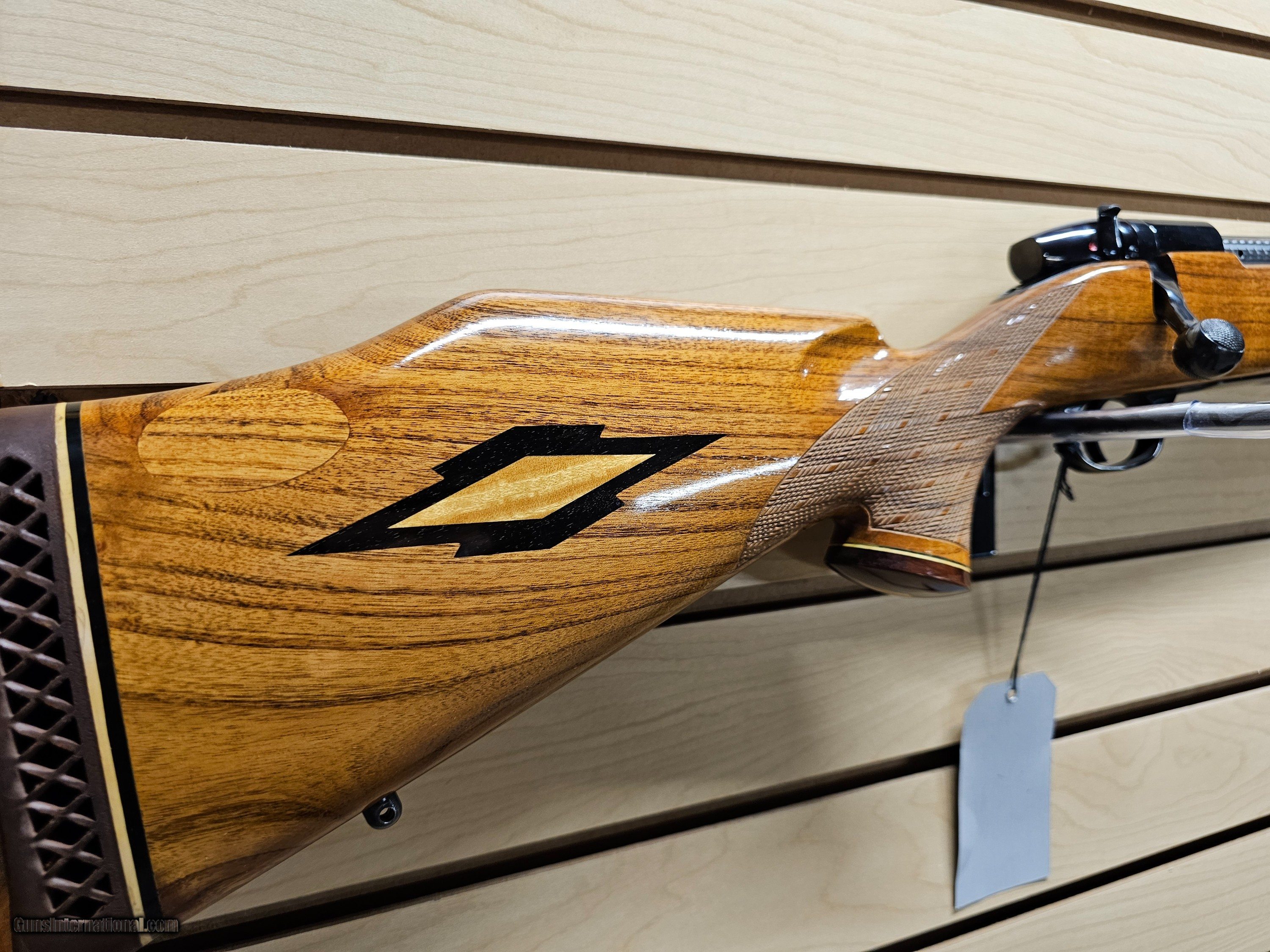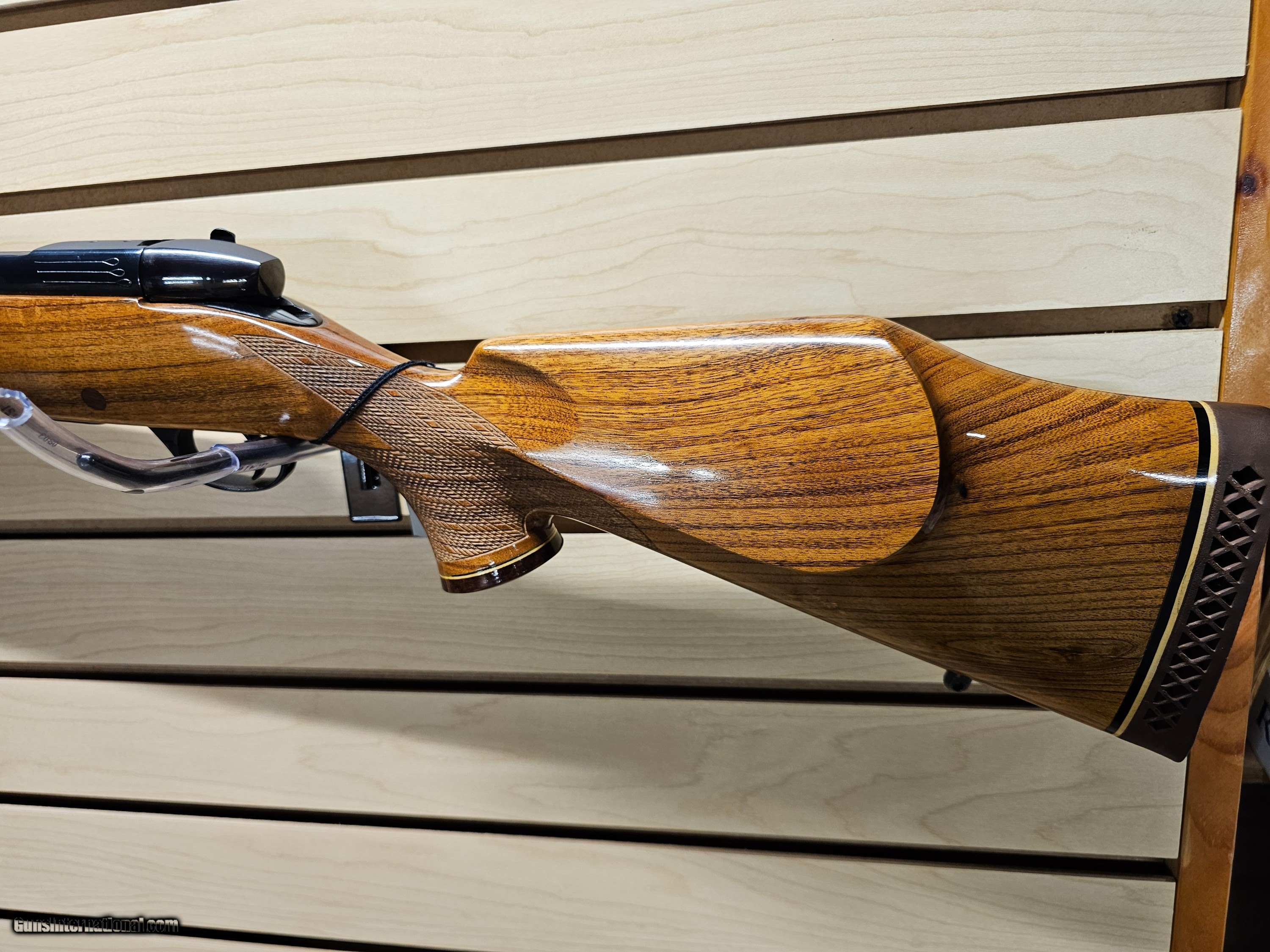 Description: Weatherby Mark V Deluxe .460 Weatherby Mag For sale is a Weatherby Mark V Deluxe, chambered in .460 Weatherby Mag. One owner, ordered from weatherby directly, with custom diamond-shaped inlay on the foreend, stock and bottom of the trip. Finish is in phenomenal shape, with one small crack in the varnish at the rear of the gun, on the left side below the cheek res, as well as a few very small dents and dings on the sides and top of the furniture. Normal wear and tear, no large dings or dents. The bore and the blueing look mint. Barrel is 26" with a build in compensator. Drilled and tapped for scope mounts. Recoil pad is not original weatherby, it is a Pachmayr White Line pad. All card transactions will have a 3.5% non-cash adjustment applied to them. All sales are subject to sales tax, and shipping fees will depend on the recipient's location. Any questions, call 973-664-9661, or email sbsrockawaygmail SOLD Rifle Caliber: .460 Weatherby Magnum Manufacturer: Weatherby Model: Mark V Deluxe |