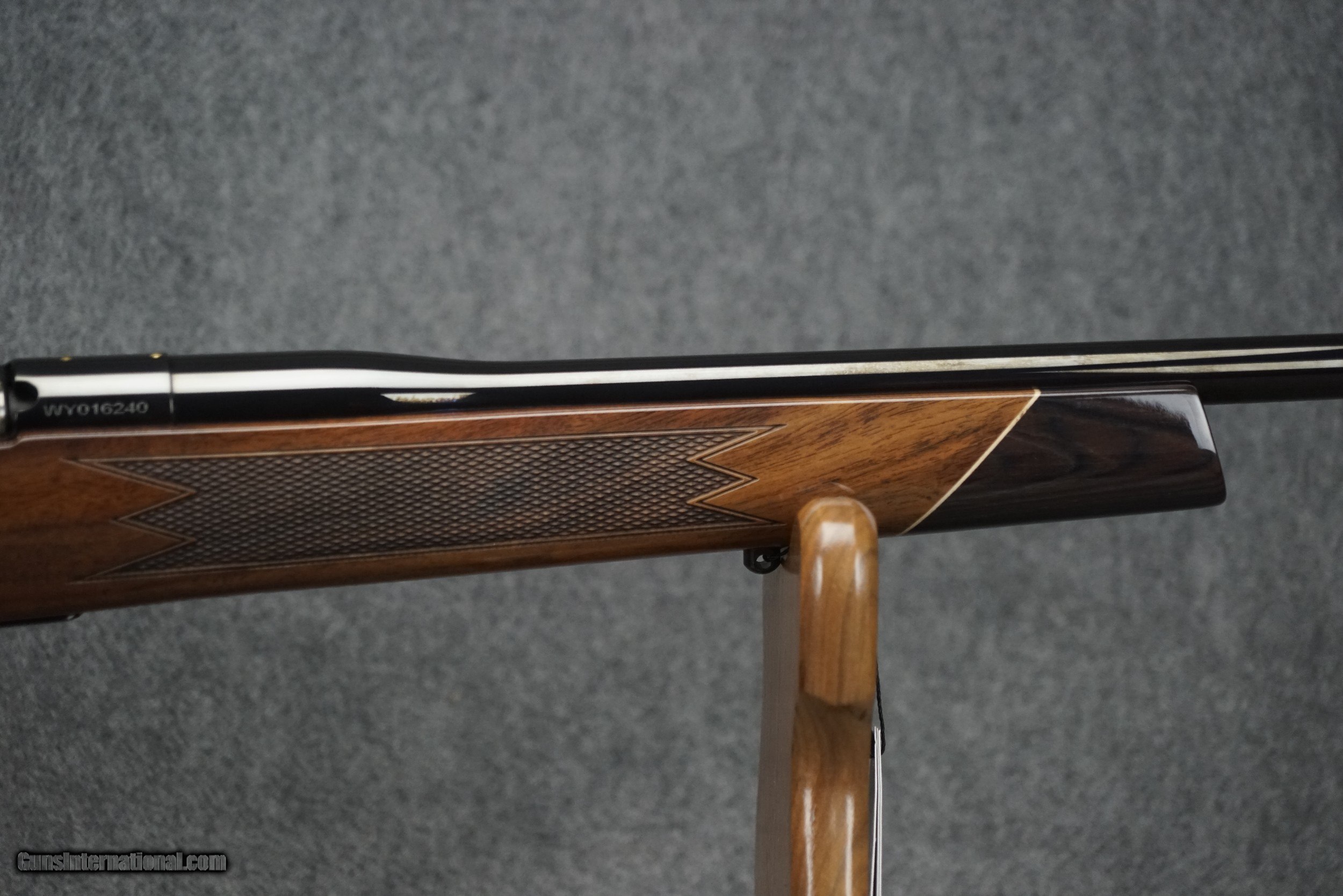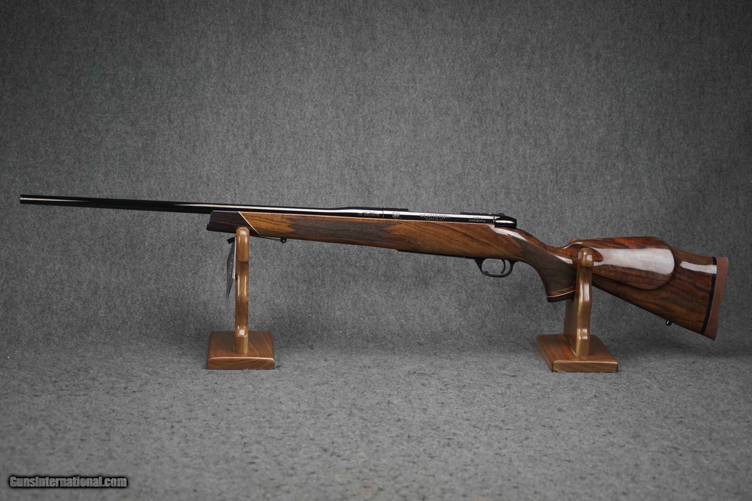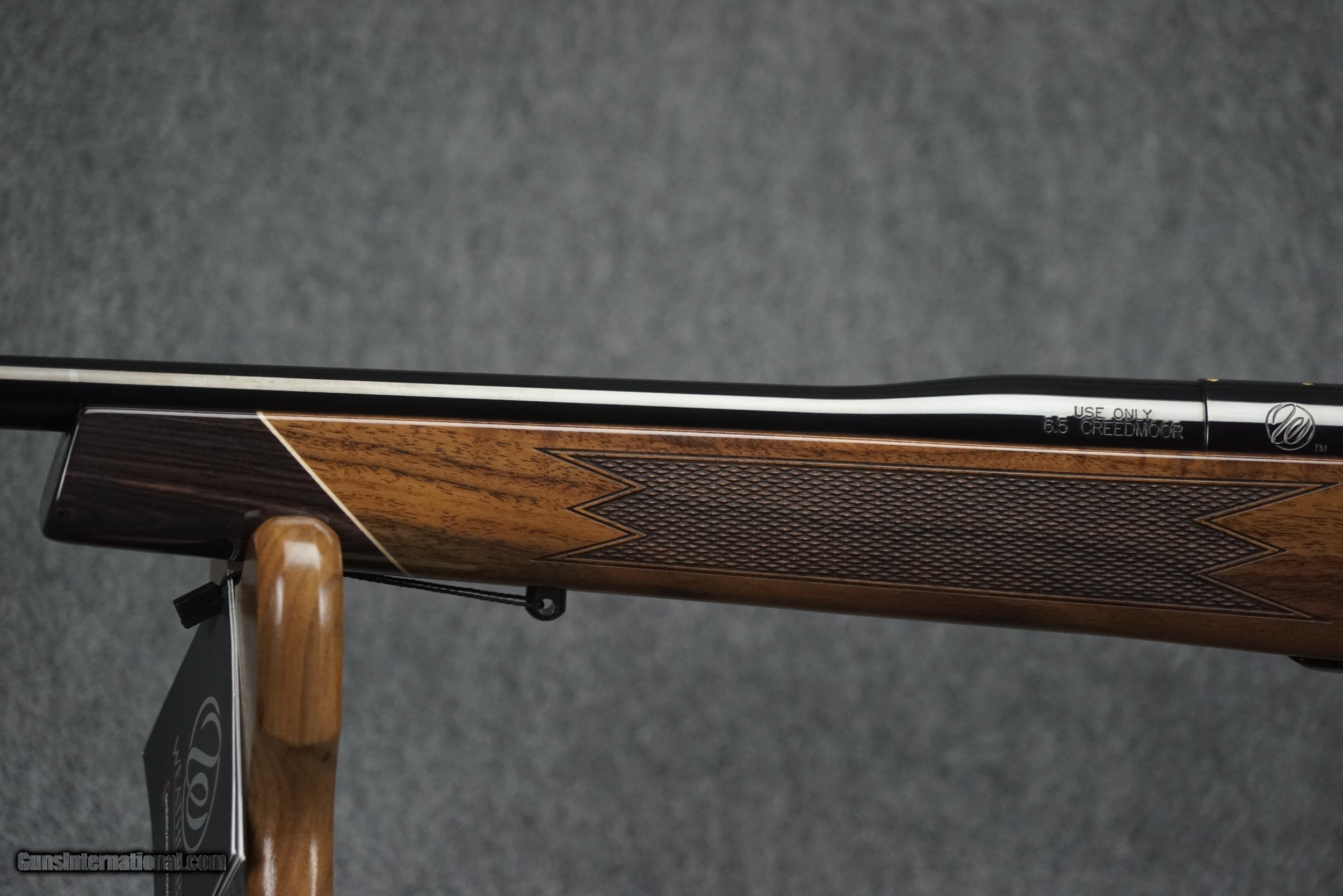 Description: Before composite stocks, brushed stainless steel barrels, and Cerakote finishes every Weatherby Mark V® that fell into the hands of lucky hunters was rich walnut and blue steel. The Deluxe pays homage to those days of traditional craftsmanship for hunters who still marvel at classic styling. Complete with regal diamond-point checkering, a rosewood forend and grip cap, maple spacers and a Pachmayr Decelerator recoil pad. Barrel / Trigger Guard / Bolt Knob - High Gloss Gloss AA Walnut Stock Fineline, diamond point checkering, rosewood forend and grip cap with maplewood spacers Overall Length: 44 5/8” Length of Pull: 13.5" Weight: 7 Barrel Length & Contour: 22” #1 Action / Barrel OAL: RH 22” Twist Rate: 1-8” Mag Capacity: 4+1 Monte Carlo: .375" Drop Comb: .875” Drop Heel: 1.625" SOLD Rifle Caliber: 6.5 Creedmoor Manufacturer: Weatherby Model: Mark V Deluxe Barrel Length: 22" Barrel Condition: BRAND NEW |