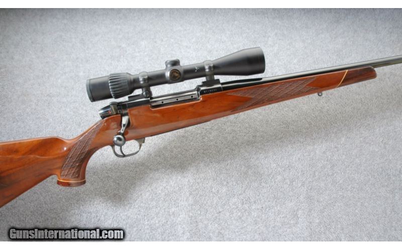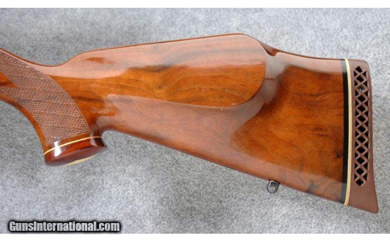 Description: SOLD Manufacturer: 1983/84 Caliber Info: 7mm Wby. Mag. Metal Condition: Good with some nicks in the barrel finish on the bottom of the barrel Wood Condition: Good, with dents and scratches Bore Condition: Good bright and sharp Barrels: 24 inch Stock: Skip lined checkered walnut Monte Carlo stock with cheek piece Stock Dimensions: 13 1/2 in. LOP Fore End: Skip lined checkered walnut with rosewood cap Butt Pad: Weatherby pad Weight: 9 lbs. 1 oz. Sights: Weaver Grand Slam 3-10x40mm scope Item Location: Lehi, UT |