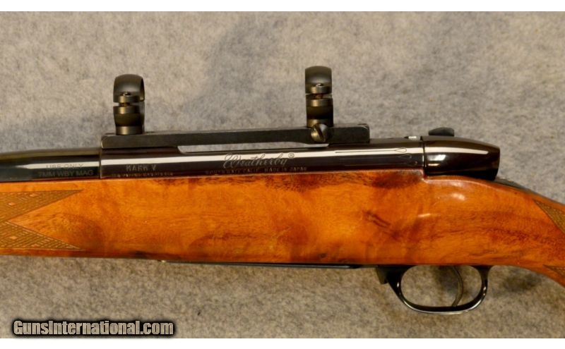 Description: This is a pre-owned Howa manufactured Weatherby Mark V Deluxe. SOLD Manufacturer: 1974-1981 Caliber Info: 7mm Weatherby Magnum Metal Condition: Excellent condition with some very small scratches on the barrel. Wood Condition: Good condition with many small scratches and dents on the stock and there is an impression in the wood around the front sling stud. Bore Condition: Clean with bright lands. Barrels: 26 inch. Stock: Checkered walnut Monte Carlo stock with Rosewood grip cap. Stock Dimensions: 13 ½ inch LOP. Fore End: Checkered walnut with Rosewood forearm cap. Butt Pad: Factory Weatherby recoil pad. Weight: 8 ½ lbs. Sights: Tapped for scope with base and rings. Extras: Comes with a 1 piece base and rings. Item Location: Glendale, AZ |