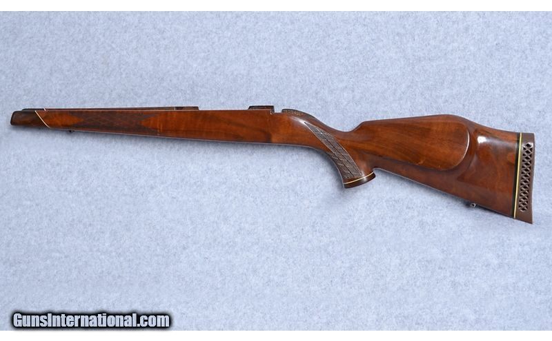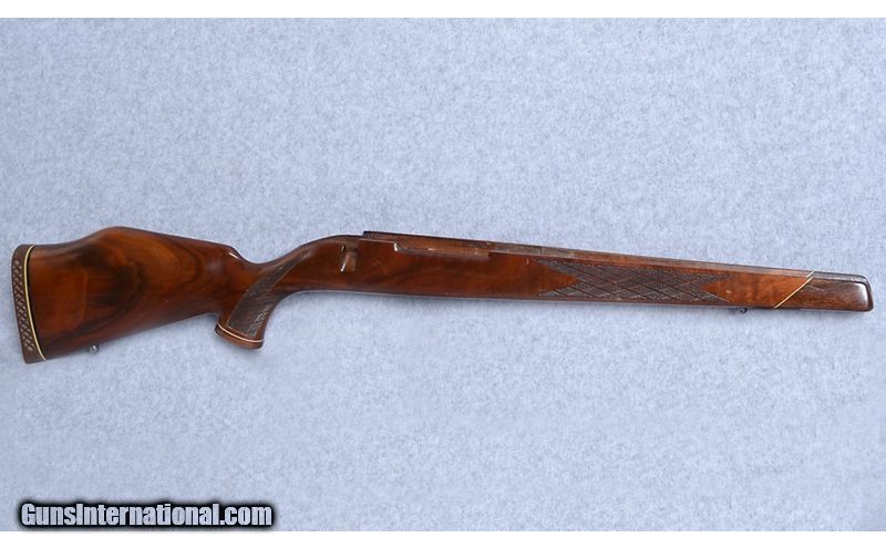 Description: Manufactured for Weatherby by J.P. Sauer in West Germany between 1964-1973, this Weatherby Mark V Deluxe is a beautiful example of what makes the West German Weatherbys so desirable. The original stock, which comes with the rifle, has a Grade AA high-gloss walnut Monte Carlo stock with right side palm swell and a rosewood forend and grip cap with a maple spacers. Currently on the rifle is a composite stock with a Limbsaver recoil pad. The original Deluxe walnut stock is cracked and has some scratches and is included to have the option to repair the stock and restore the rifle to original condition. 7mm Weatherby Magnum SOLD Metal Condition: Very good. There is some wear in the bluing on the bolt knob and at the crown and some scratches around the end of the barrel. See photos. Wood Condition: Original Mark V Deluxe stock is cracked in the wrist and has some scratches and is included with the rifle if new owner would like to repair. See photos. Bore Condition: Excellent Barrels: 26 Stock Dimensions: 14" LOP Butt Pad: LImbsaver Weight: 9 LBS Sights: Vintage Redfield Widefield 2-7x scope Item Location: Boise, ID |