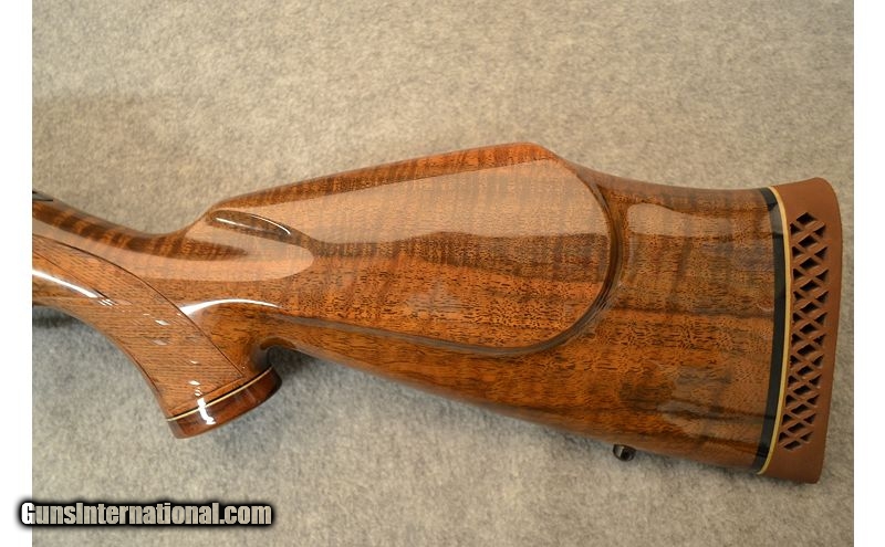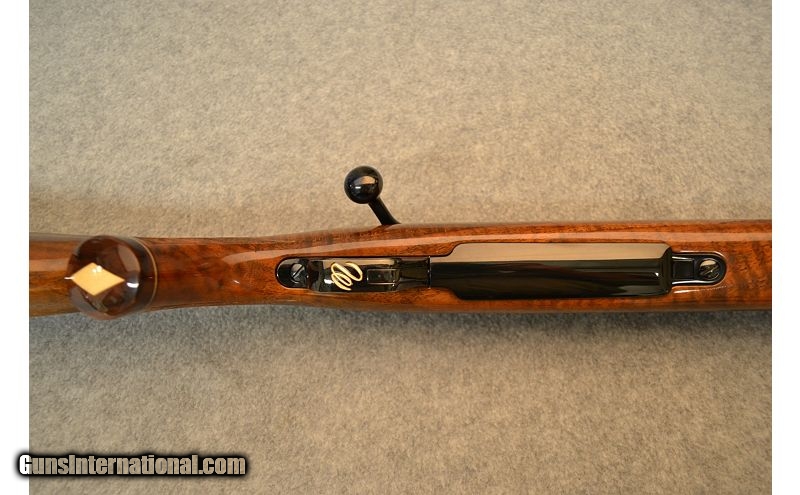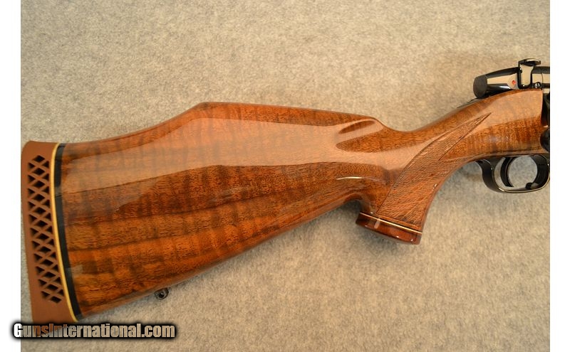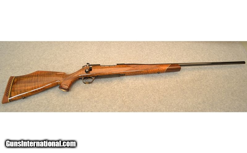 Description: This is a factory-second Mark V, note the lacquer finish chipping around the fore stock sling stud-- otherwise, this rifle appears as new! AA-Grade walnut Monte Carlo stock SOLD Manufacturer: SN : PM000386 ; made in USA Caliber Info: .257 WBY Magnum Metal Condition: Excellent Wood Condition: Excellent overall, with minor fore stock damage as described Bore Condition: Clean Barrels: 26 inch Triggers: Factory, adjustable Stock: Factory AA-Grade walnut Monte Carlo stock Stock Dimensions: LOP 13 5/8" with pad Fore End: Rosewood fore cap; NOTE: finish chipping around sling stud Butt Pad: Weatherby brown rubber Pachmayr recoil pad Weight: 8 lb 5 oz Sights: None; receiver is drilled and tapped for scope mounts (not included) Extras: Factory Box Item Location: Greenville, SC |