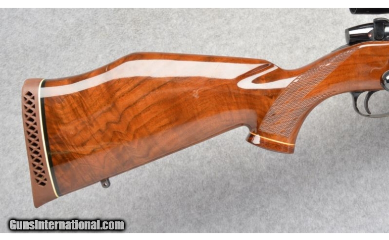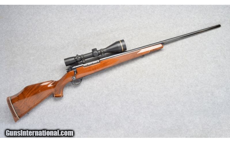 Description: Couple cosmetic imperfections otherwise, extremely clean rifle. SOLD Caliber Info: 340 Weatherby Magnum Metal Condition: Couple minimal scratches and a spot of oxidation on the floorplate Wood Condition: Couple scratches and dings Bore Condition: Bright and Sharp Barrels: 26 Inch Stock: Deluxe Pistol Grip with Raised Cheek Stock Dimensions: 13 1/2" LOP Butt Pad: Weatherby Recoil Pad Weight: 9 Lbs 10 Ozs Sights: Leupold Vari-X III 3.5-10 X 50mm Item Location: Buda, TX |