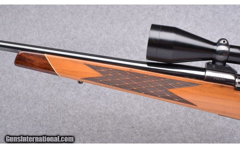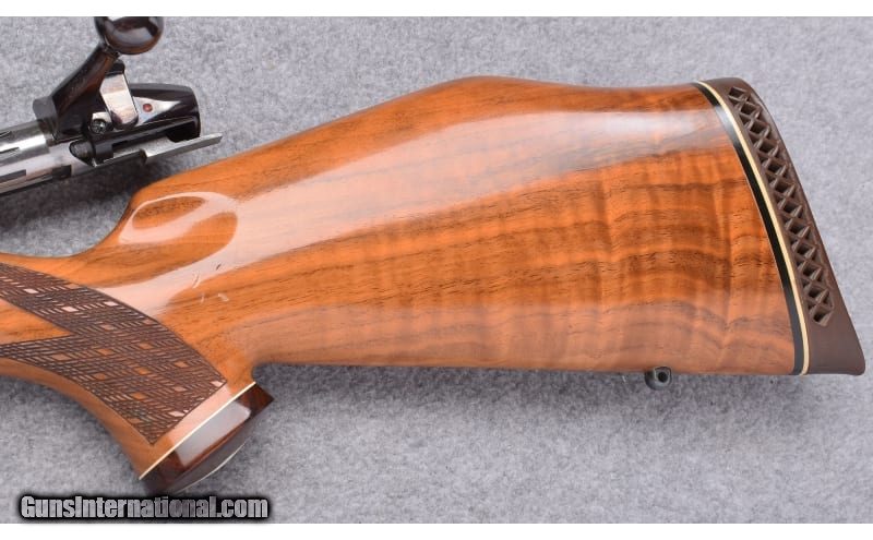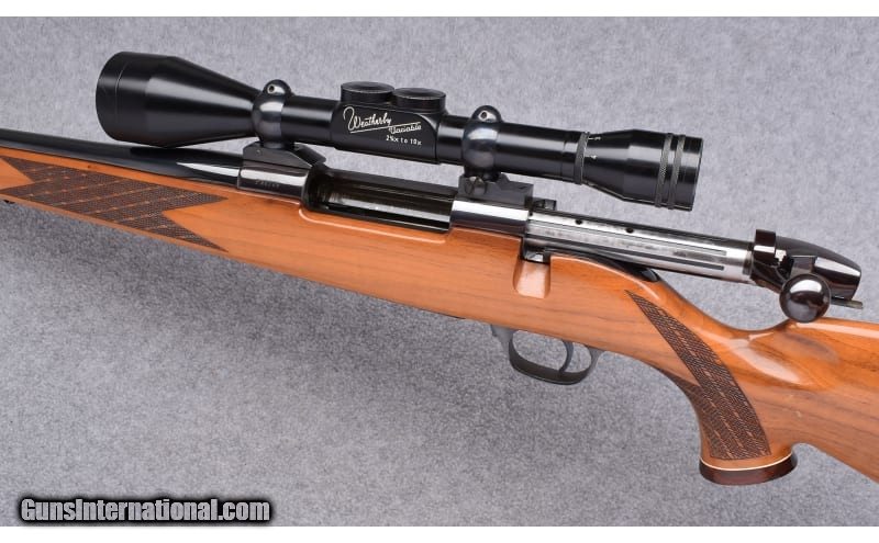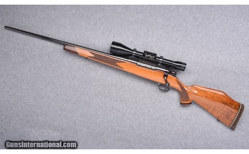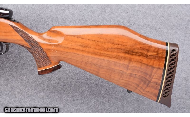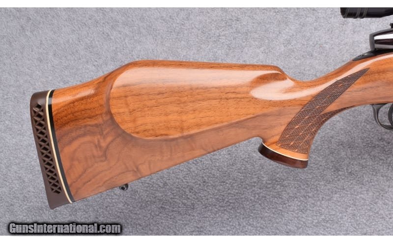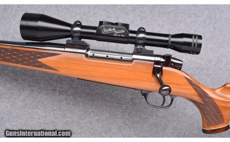 Description: Very high condition German production rifle shows few scattered scratches and dings on the stock. 7mm Weatherby Magnum SOLD Metal Condition: Polished Blue Wood Condition: Deluxe Walnut Bore Condition: Bright Sharp Barrels: 24 " Tapered Stock Dimensions: 13 1/2" LOP Fore End: Rosewood Cap Butt Pad: Weatherby Recoil Pad Weight: 9 LBS Sights: Weatherby 2 3/4 -10X Scope Item Location: Buda, TX |