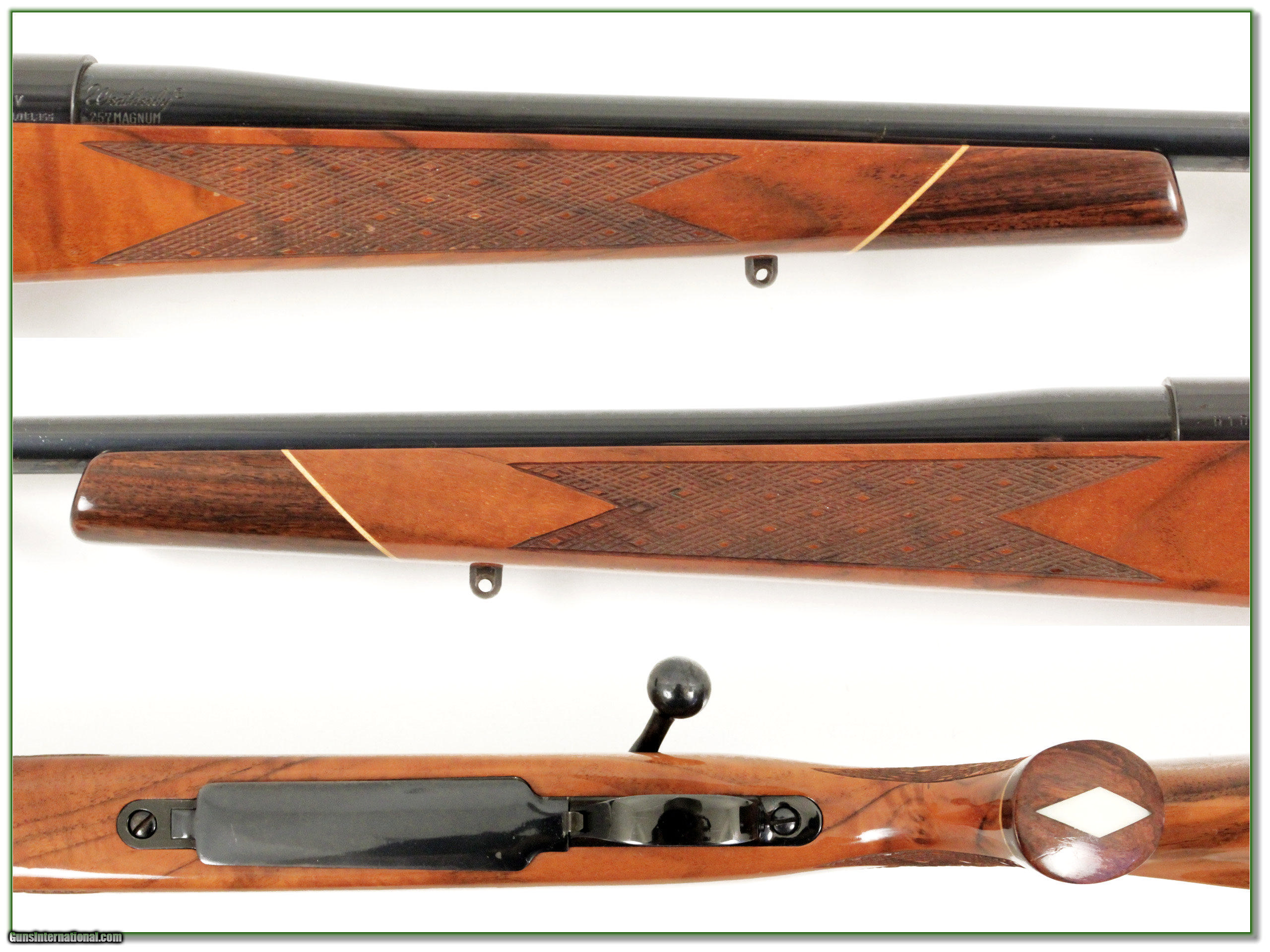 Description: Left Handed Hunters and Shooters, this is a hard to find LH Mark V Deluxe in the flat shooting 257 Wthy Magnum. It is the lighter weight 24in barrel so perfect for most hunting situations. The wood has much nicer grain than most. It has only a few minor marks from use and will make a high-end hunting gun! With the current list for a new Mark V Deluxe now at $2700 for a LH (if you can find one) you won’t go wrong here! It is a Shooting Investment! Shipping and insurance is $35 or $15 more if you want it shipped in a new Plano hard case. Please email me with any questions or larger pictures. (Consign your quality firearms with Shooting Investments for only 10%! Let me know if you have any you would like to sell!) 17-0714 Payment: Payment is by Money Order, Cashiers Check or Personal Check. I can now also accept MasterCard and Visa with a 3% convenience fee. PayPal can be used for some items but never firearms. Please let us know if you would like to pay via PayPal. Shipping: The shipping charge will be listed in each description. It is $35 for most guns. Some heavy guns or those insured for over $2000 will be higher. Shipments to Alaska and Hawaii are higher because air shipment is required. Most firearms are shipped within 5 days of receipt of payment. We prefer shipping at the beginning of the week to avoid firearms in transit over weekends. We package all shipments carefully and insure them for the full purchase price, rounded up to the next $100. In the unlikely event that damage occurs, it is important that you save all packaging material for the claims process. Optics are shipped Priority Mail and most other non-firearm shipments are shipped First Class. Returns: Our return policy is simple. If for any reason you are not pleased with your purchase, you may return your item for a refund. The only exception is ammunition, it cannot be returned. It is important to us that you are happy. Guns cannot be fired or dissembled before returning them and must be returned in the same condition as received. Notification of a return must occur with-in 3 days of receipt at your dealer. Shipping, convenience and dealer fees are not refundable and are the responsibility of the buyer. Lay-a-way: If needed, we offer a 60 day lay-a-way option on most firearms. It is 1/3 now, 1/3 in 30 days and 1/3 in 60 days. Lay-a-way firearm sales are final. Consigning your firearms with Shooting Investments: We will help you get top dollar for your firearms. While most local guns shops charge 20% or more, our fee is only 10% with a minimum of $50. At your local gun shop it might take months to sell. Selling on-line provides instant access to thousands of interested buyers. You won’t find any other on-line dealer willing to sell your firearms for only 10% or listing every gun on 4 separate s. Selling through an House typically costs the seller 15% and the buyer an addition 15% (so 30%) and you have to wait several months to sell and longer to receive funds. If properly priced, we will sell your firearms in a week or two. Send us an email or give us a call and we’ll explain how easy it is for you to get top dollar. Trading: We collect guns and usually just trade for guns we want to add to our collections. We often sell guns for others wanting to purchase one of ours. We find this the most fair to both of us. Our Commission is only 10% and we hold the gun you want until yours sells. Please contact us if you want to sell one of yours to buy one of ours. Help for California Buyers: We are happy to ship to California. It is the buyer’s responsibility to make sure any item you buy is legal in your state. We are also happy to help with your purchase of a firearm from someone other than us. If you see a gun you would like to buy but the seller can’t or won’t ship to California we can help. You buy the gun and have it shipped to us. We’ll then ship it to your California dealer. The cost for this service is only $30 + shipping. Let me know if we can help! SOLD |