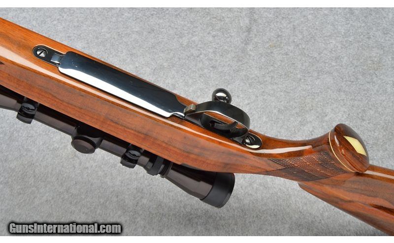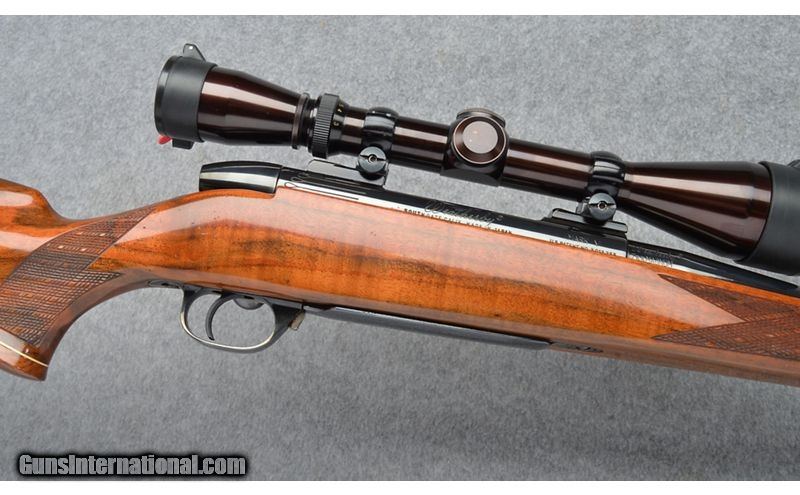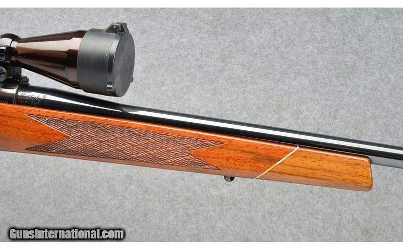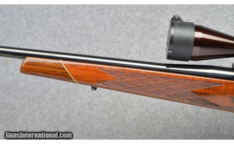 Description: Left-hand, Japan production Mark V. Deluxe grade pistol grip stock with raised cheek, skip checkering. Very high condition rifle has a few scattered small nicks and impressions on the stock, few minimal imperfections on the steel. Quality optics. 7mm Weatherby Magnum SOLD Metal Condition: High Polished Blue Wood Condition: High Gloss Bore Condition: Bright Sharp Barrels: 24 Inch Triggers: Adjustable Stock Dimensions: 13 1/2" LOP Weight: 9 lbs. 1 oz. Sights: Leupold ~ Vari-X II 3-9 X Item Location: Buda, TX |
