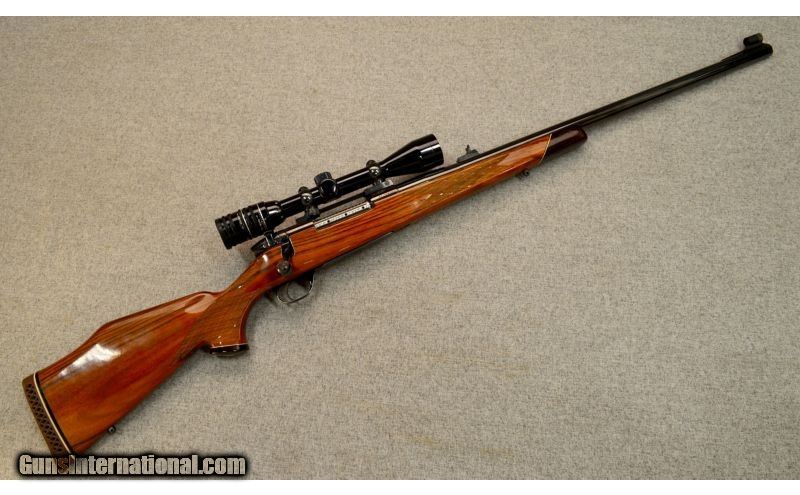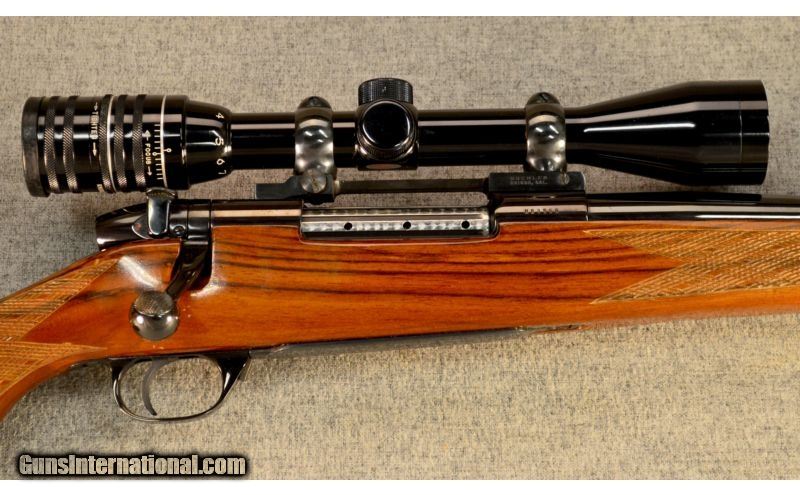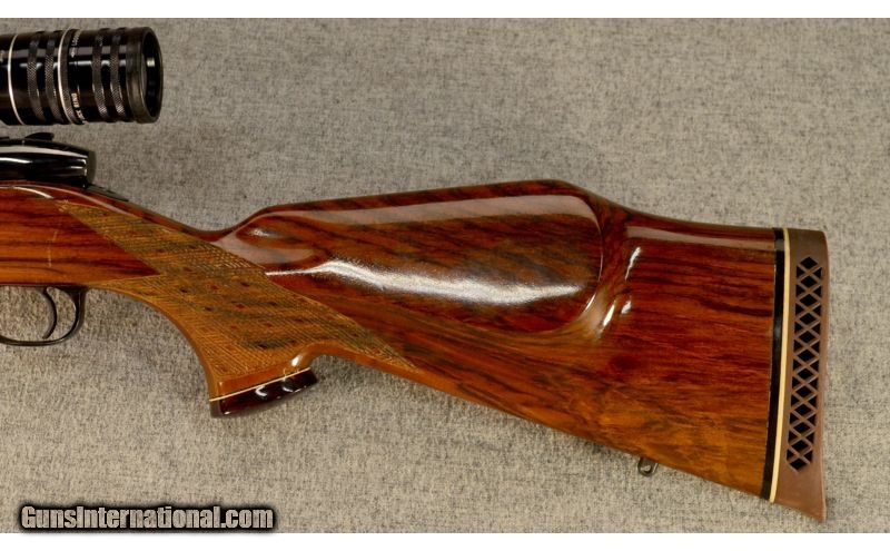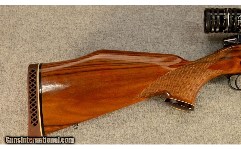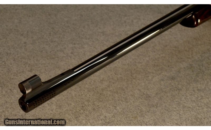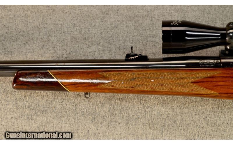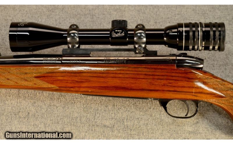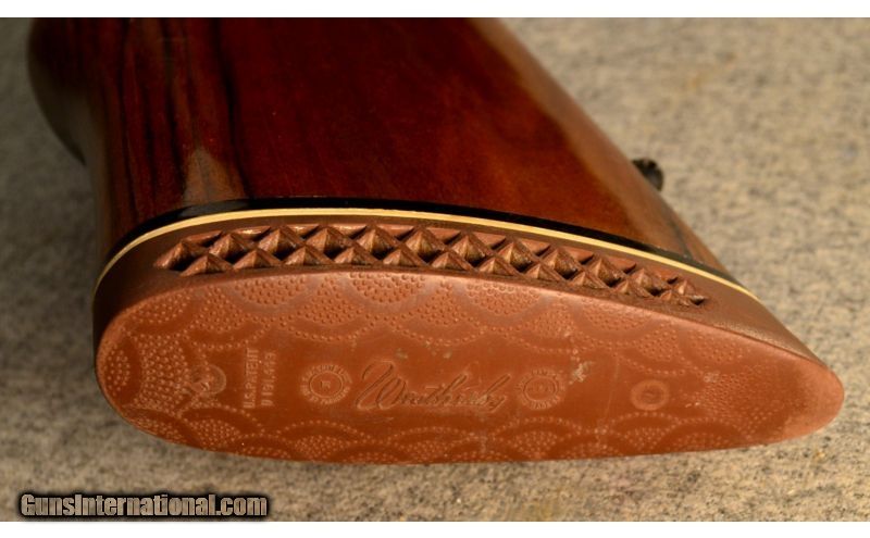 Description: This is a pre-owned Weatherby Mark V Deluxe Magnum in .460 Weatherby Magnum with integral muzzle break and Weatherby Premier riflescope SOLD Caliber Info: .460 Wby. Mag. Metal Condition: Very good with a few small scratches and dings plus a cluster of small scratches on the left side of the barrel Wood Condition: Very good with a few small scratches, a few small dents and a 1 1/2" scratch on the left side of the stock Bore Condition: Clean with bright lands Barrels: 26" with integral muzzle break Stock: Checkered walnut with rosewood pistol grip cap Stock Dimensions: 14" LOP Fore End: Checkered walnut with rosewood tip Butt Pad: Weatherby pad Weight: 10.5 Lbs. with scope Sights: Hooded, beaded blade front, adjustable Williams rear with Weatherby Premier 3-9x40mm riflescope Item Location: Glendale, AZ |