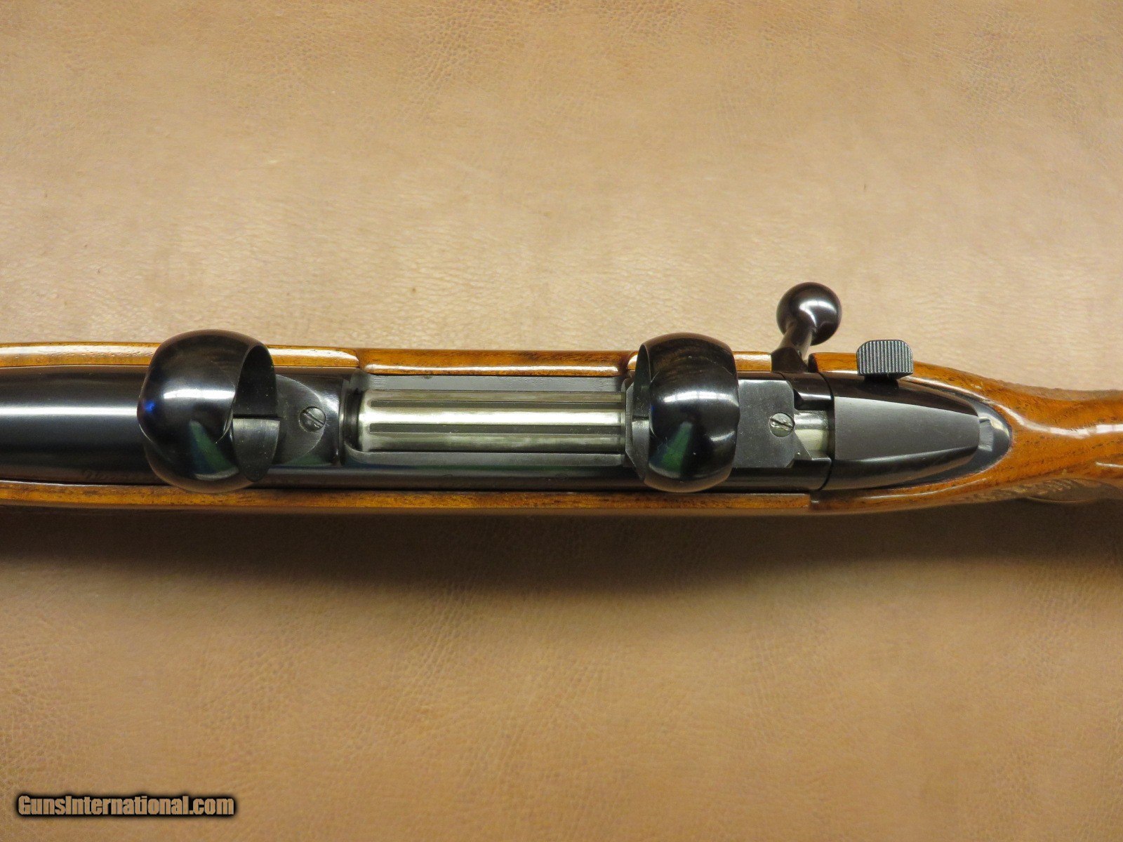 Description: 22-250 Remington has 26 inch barrel. Conetrol bases and rings for scope mounting. Serial number S01xxx. Nicely figured high gloss checkered walnut stock has rosewood forend tip and pistol grip cap, sling swivel studs, cheekpiece, and original rubber butt pad. Made in Japan. All in 90%+ condition. SOLD |