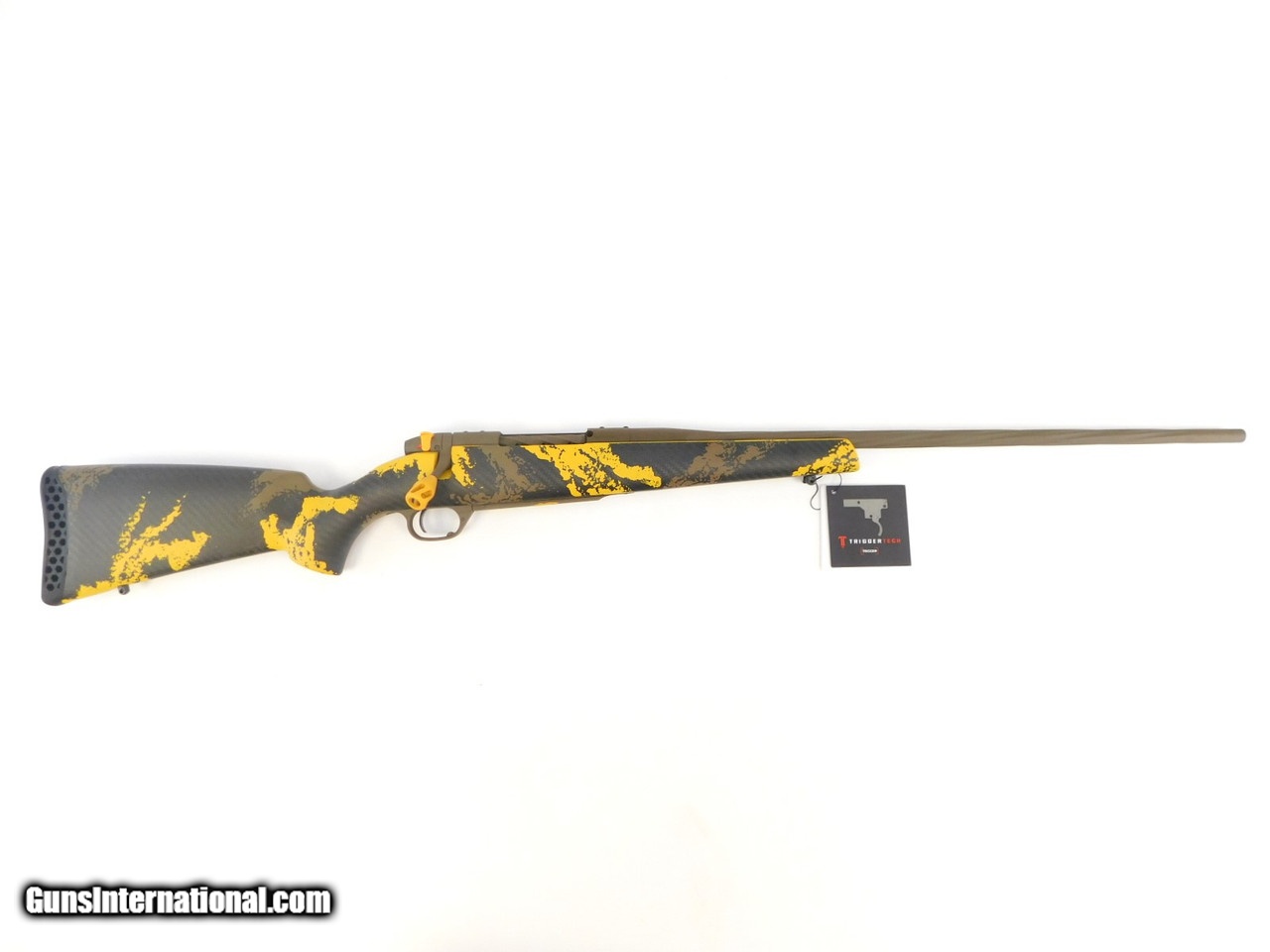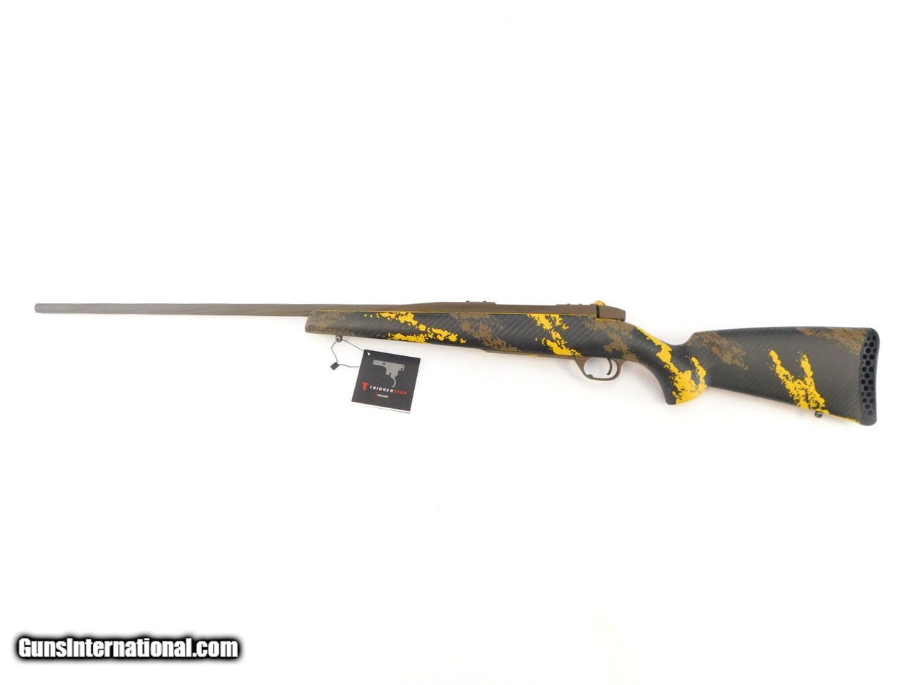 Description: Manufacturer: Weatherby, Inc. Model: Mark V® Elevation 7220 SKU: MWY02N257WR8B Caliber: .257 Wby Mag Capacity: 3 + 1 Rounds Barrel: 26" - 28" w/Brake, Spiral Fluted, Threaded Barrel / Receiver / Trigger Guard / Bolt Finish: Patriot Brown Cerakjote Rate of Twist: 1 in 10" Bolt Knob / Safety: Gold Cerakote Stock – Visible Carbon Fiber with Gold & Patriot Brown Sponge Pattern Camo Overall Length: 48" Length of Pull: 13.5" Weight: 6.2 lbs All items are factory new in box unless otherwise stated. Based on the information available to us, the above specifications describe this item to the best of our knowledge. For further information, please contact or visit the manufacturer's . SOLD |