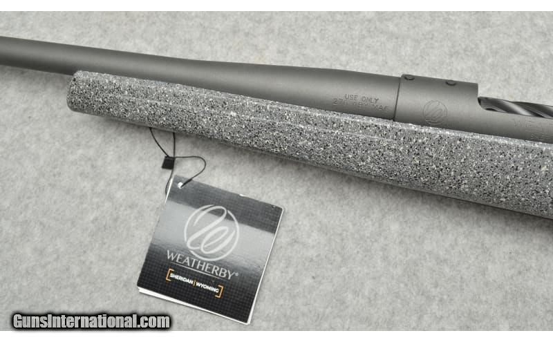 Description: This rifle does not appear to have been fired other than factory proofing. .270 Weatherby Magnum SOLD Chambers: .270 Weatherby Magnum in a three round box magazine bolt action rifle Metal Condition: "Very good, appears near new Bore Condition: Bright with sharp rifling Barrels: 26" 1:10" Twist Triggers: Trigger Tech adjustable Stock Dimensions: 14" LOP Fore End: Polymer textured with sling stud Butt Pad: Weatherby rubber Weight: 7 Lbs. 4 Oz. Sights: "No Sights, drilled and tapped for scope mounts Item Location: Grand Junction, CO |