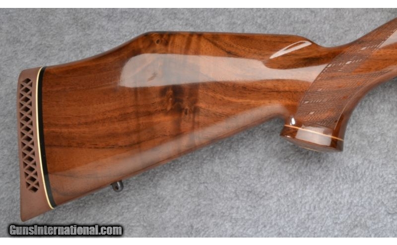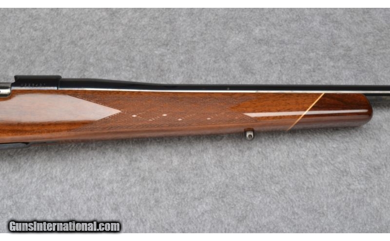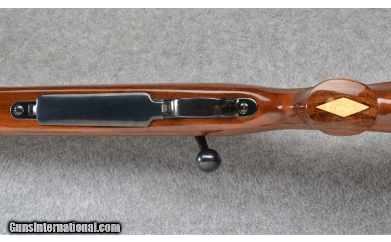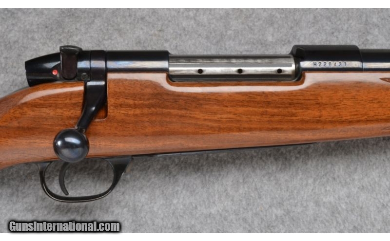 Description: Barrel blue shows a couple small marks. Remains excellent throughout showing little use. No box. Japan manufacture. SOLD Manufacturer: S/N H226XXX Caliber Info: .257 Wby. Mag. Metal Condition: Excellent Wood Condition: Excellent Bore Condition: Excellent Barrels: 24 Triggers: Factory Stock: Checkered Walnut Pistol Grip with Contrasting Cap Stock Dimensions: 13 1/2" LOP Fore End: Checkered Walnut with Rosewood Cap Butt Pad: Brown Vented Rubber Weight: 8 LB Sights: None Item Location: Wheeling, WV |
