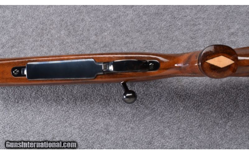 Description: Blue shows hunting wear and is free of pitting. Wood has had a coat of finish added that has aged cracked throughout. Bore is bright and excellent. Complete with scope bases. SOLD Manufacturer: S/N H219XXX Caliber Info: .378 Wby. Mag. Metal Condition: Good Wood Condition: Fair - Refinished Bore Condition: Excellent Barrels: 26 Triggers: Factory Stock: Checkered Walnut Pistol Grip with Contrasting Cap Stock Dimensions: 13 1/2" LOP Fore End: Checkered Walnut with Contrasting Cap Butt Pad: Brown Vented Rubber Weight: 8 1/2 LB Sights: None - Bases Included Item Location: Wheeling, WV |