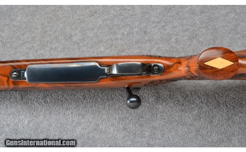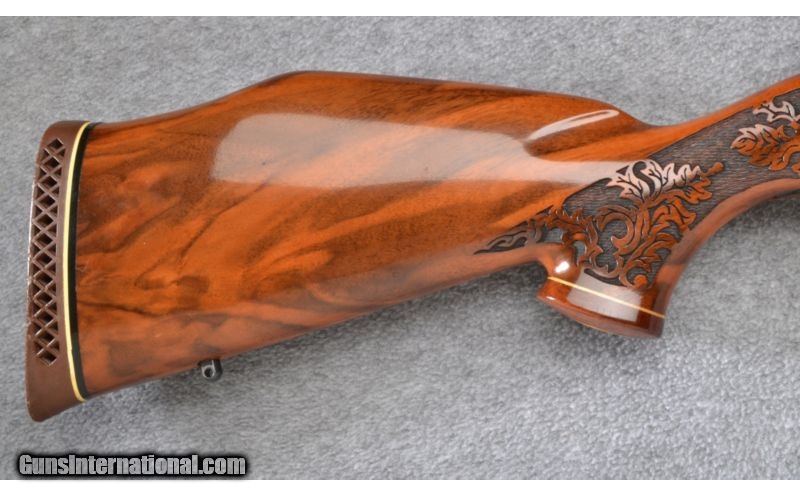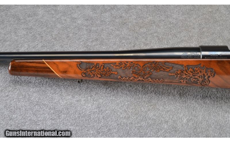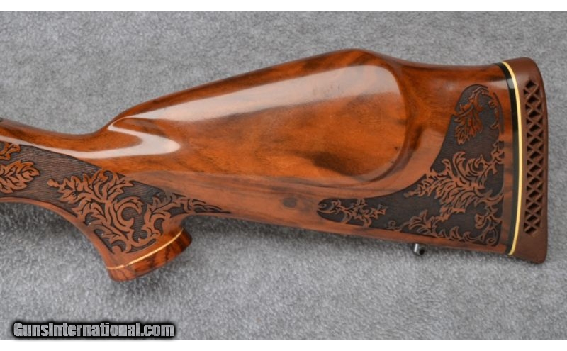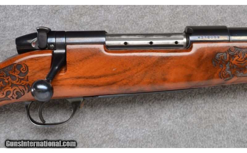 Description: Wood shows a bit of age cracking. Blue and bore remain excellent. No box. SOLD Manufacturer: S/N H218XXX Caliber Info: .300 Wby. Mag. Metal Condition: Excellent Wood Condition: Good Bore Condition: Excellent Barrels: 26 Triggers: Factory Stock: Lazer Engraved Pistol Grip with Contrasting Cap Stock Dimensions: 13 1/2" LOP Fore End: Lazer Engraved with Contrasting Cap Butt Pad: Vented Rubber Weight: 8 1/2 LB Sights: None Item Location: Garner, NC |
